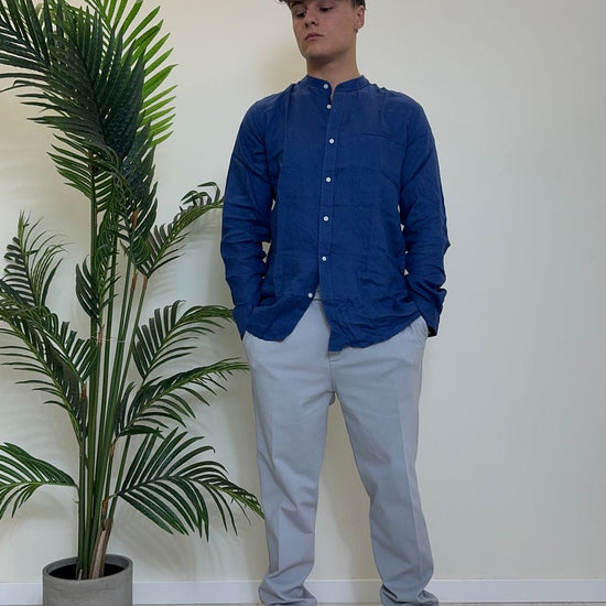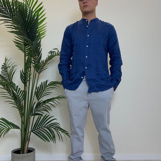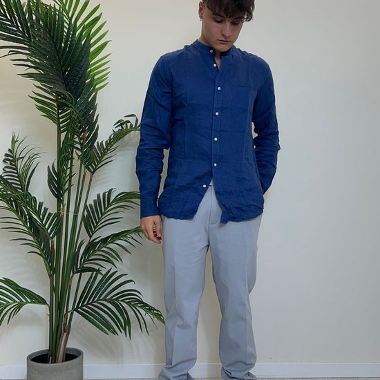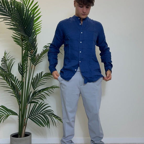 ALCOTT - CF2353UOY13 - CAMICIA 100%LINO COLLO COREANA CON TASCHINO