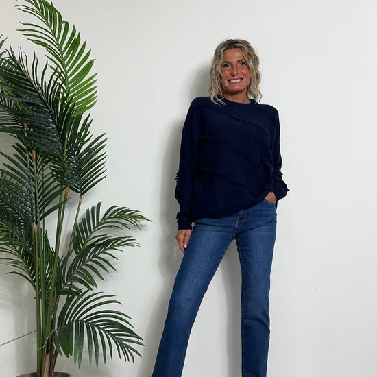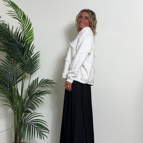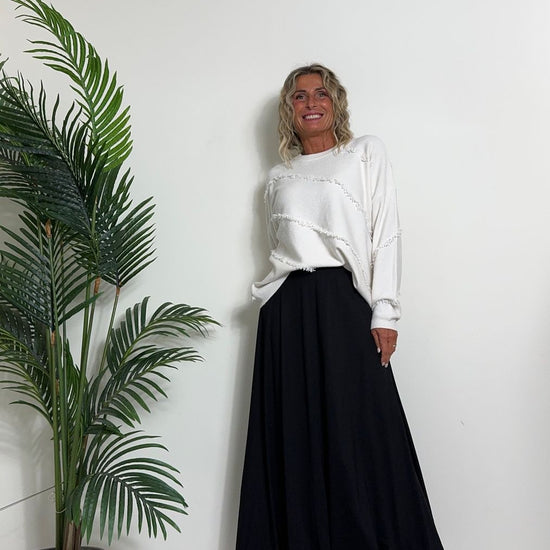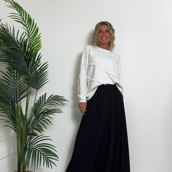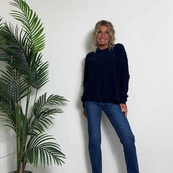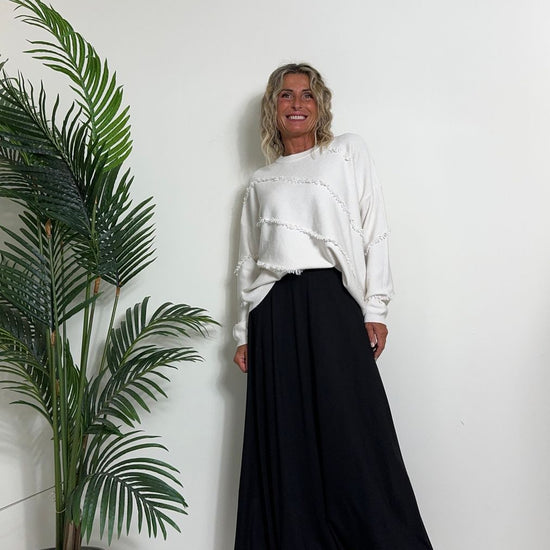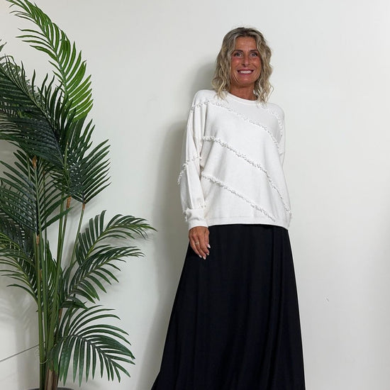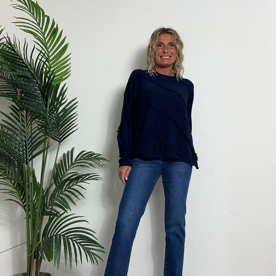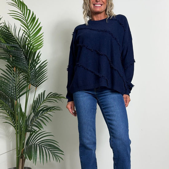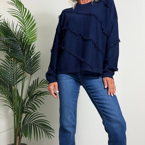 DAFNE - 0798P27 - MAGLIA A SCATOLA IN CALDA VISCOSA CON FRANGINE DIAGONALI, FIT AMPIO