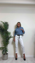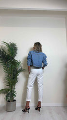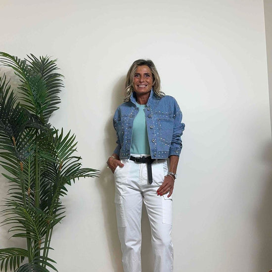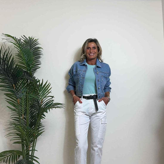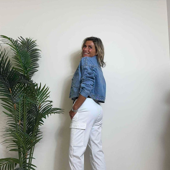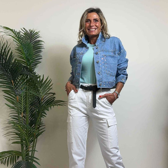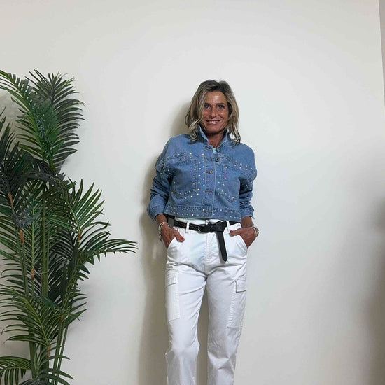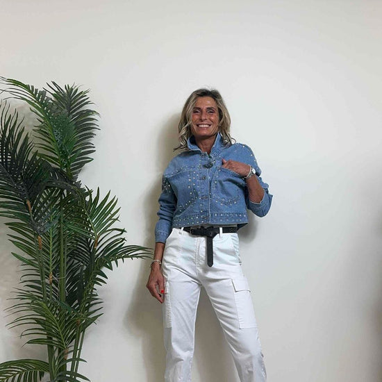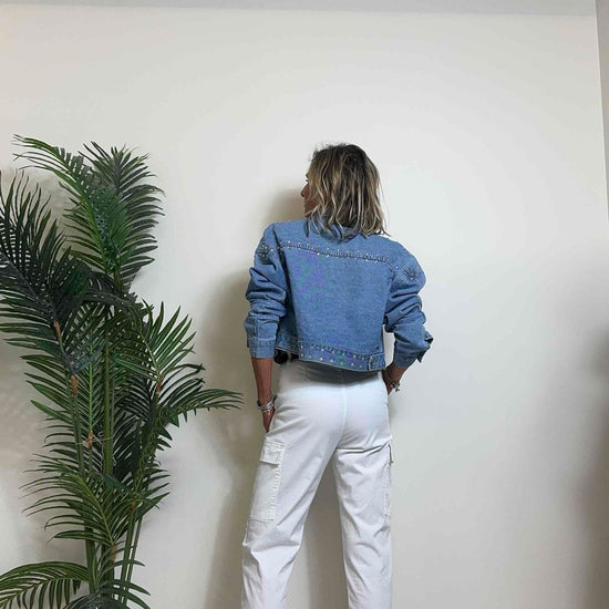 DAFNE - 1510SS24P39 - GIUBBINO DENIM CON STRASS MULTICOLOR, FIT AMPIO