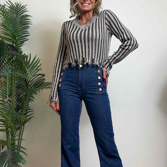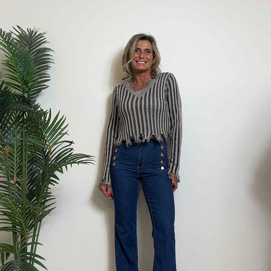DAFNE - 1539P29 - JEANS FLARE BOTTONI GOLDEN ROSE, COMFORT STRETCH, VITA ALTA