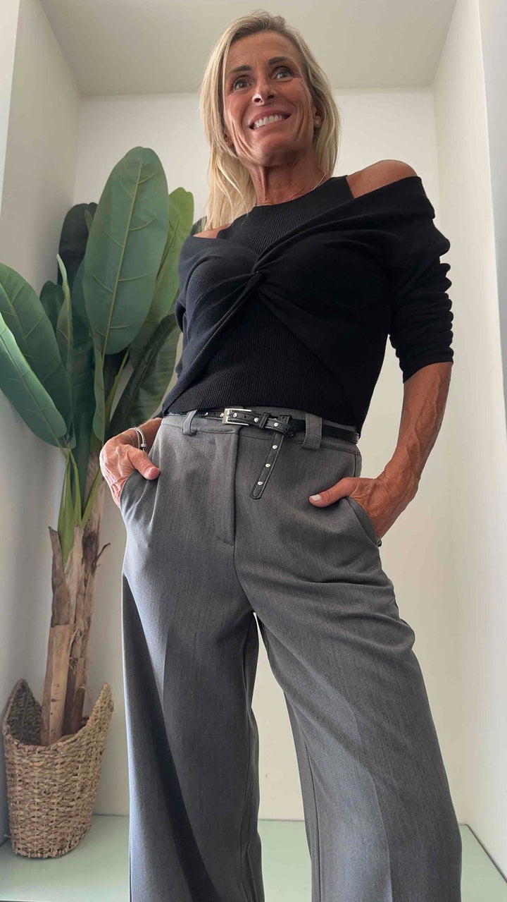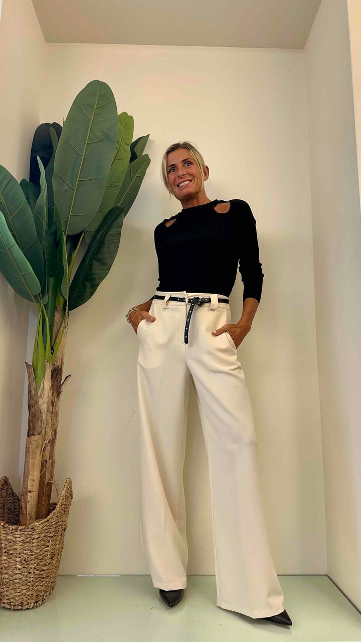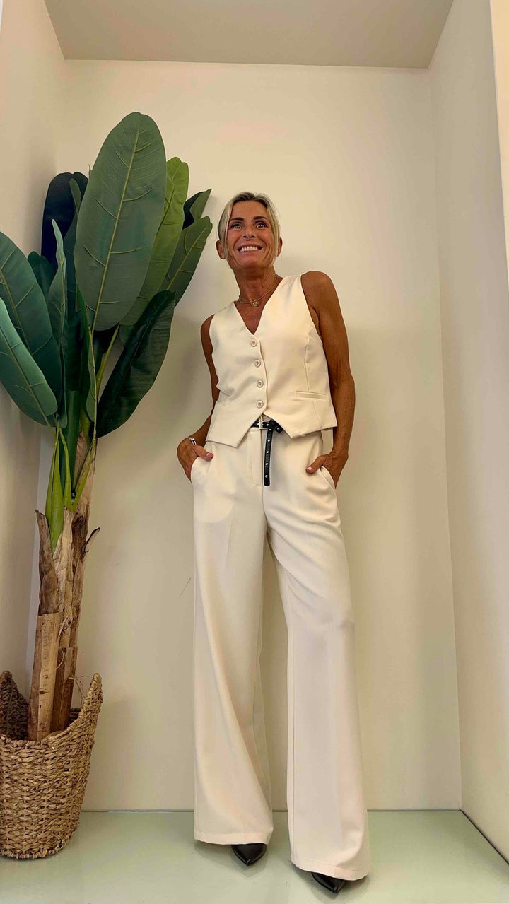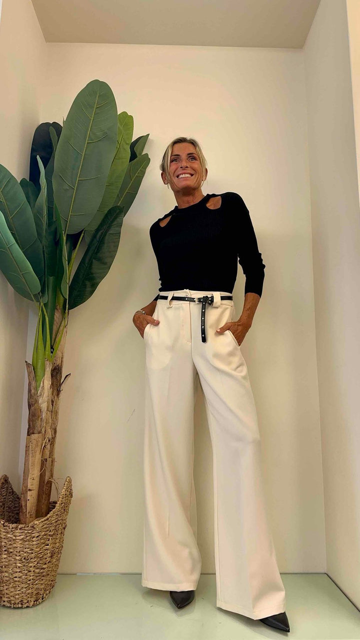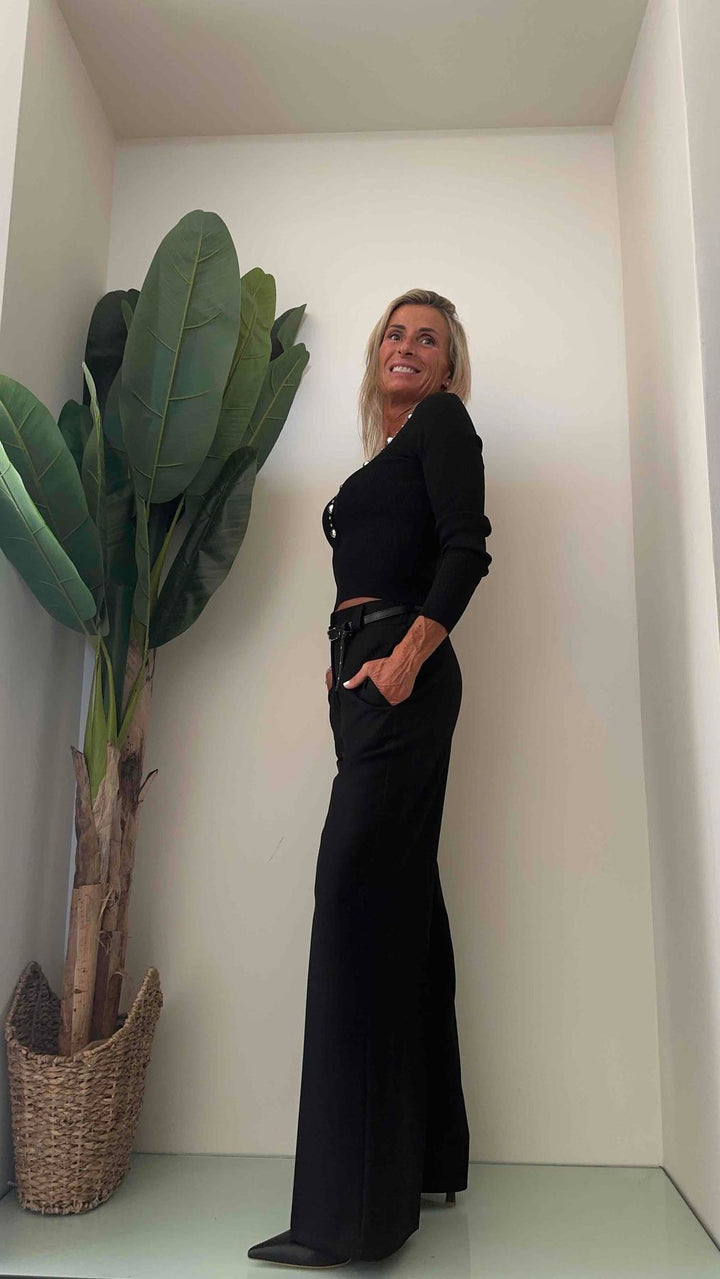 DAFNE - 20108P27 - PANTALONE PALAZZO FLUIDO EL. DIETRO + CINTURA