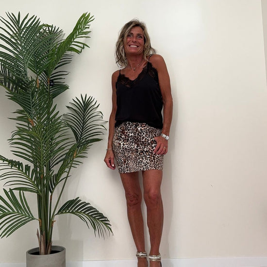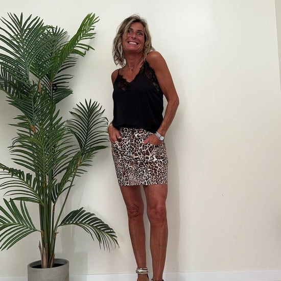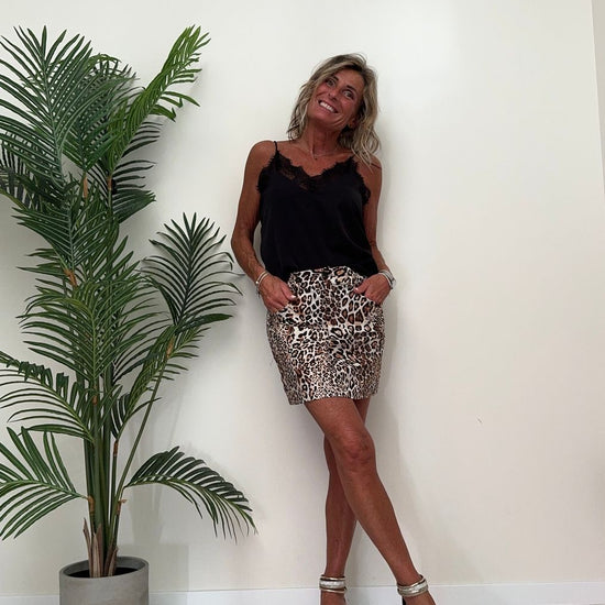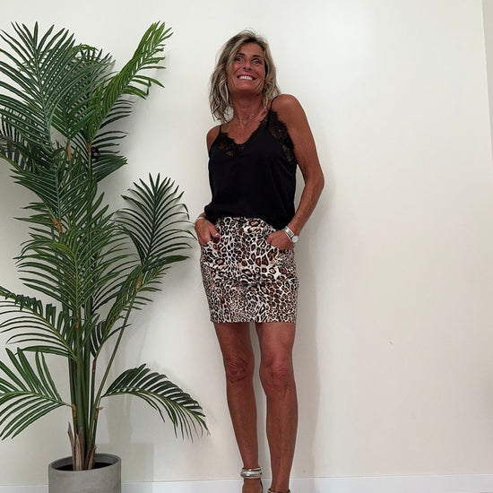 DAFNE - 8024P23 - GONNA MINI IN COTONE STAMPA ANIMALIER. A TUBINO CON TASCHE