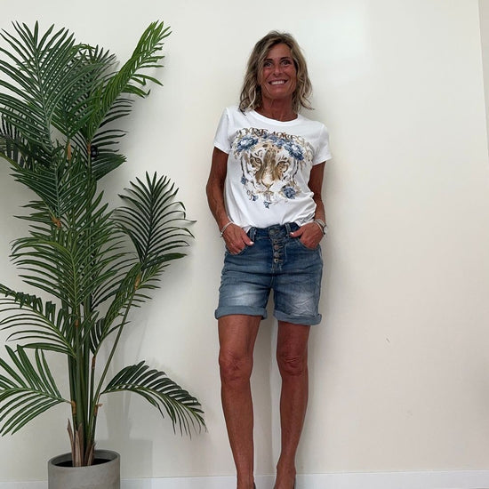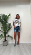 DAFNE - 824112-2JC738P23 - SHORT DENIM STROPICCIATO ELASTICIZZATO CON BOTTONI SMALTATI