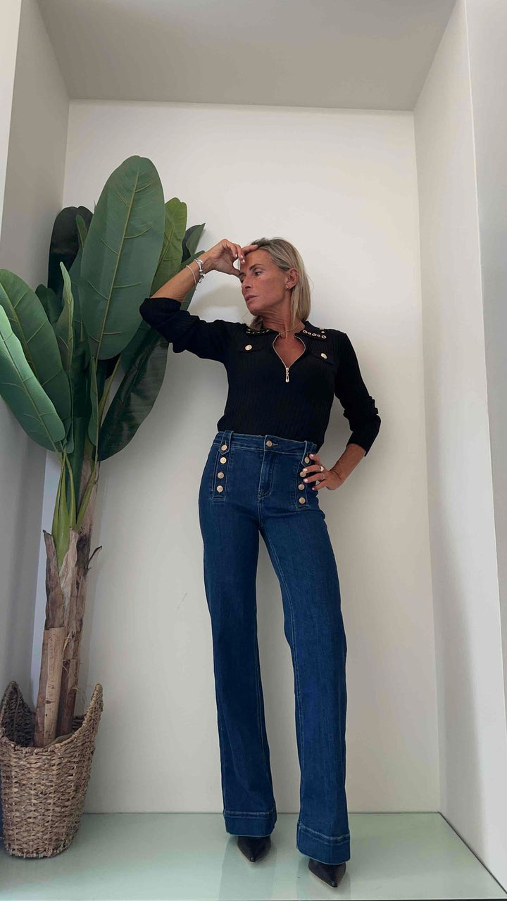 DAFNE - 9191P31 - JEANS PALAZZO ELASTICIZZATO BOTTONI ORO
