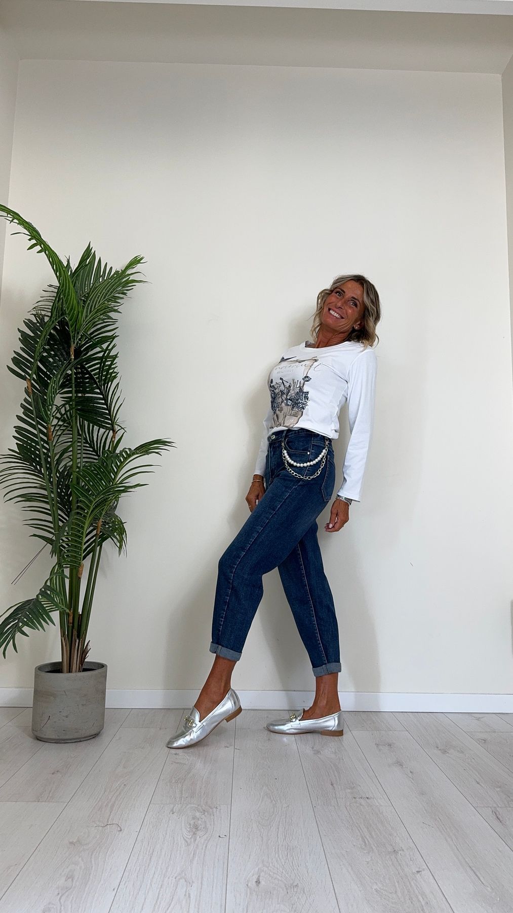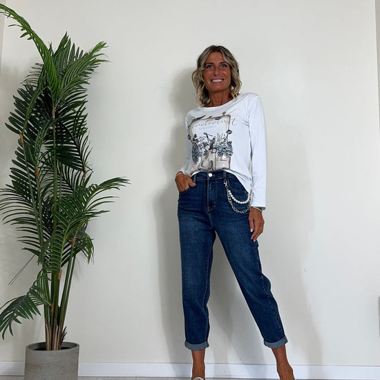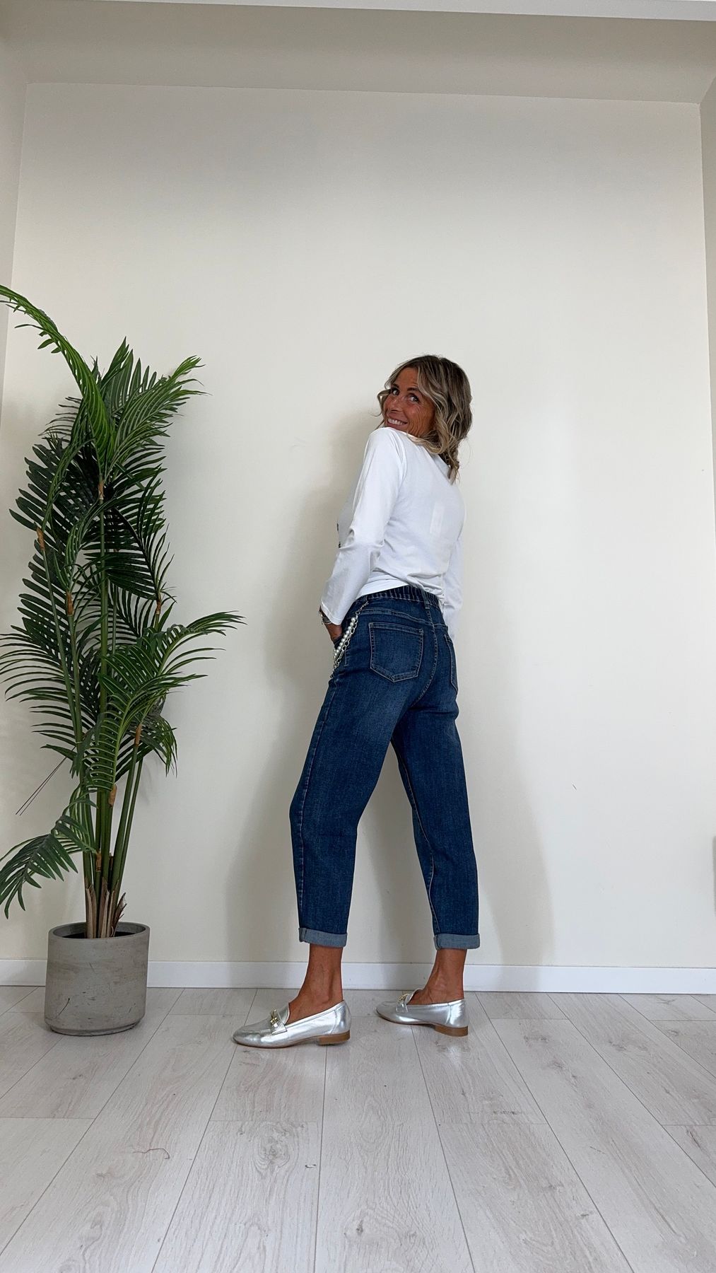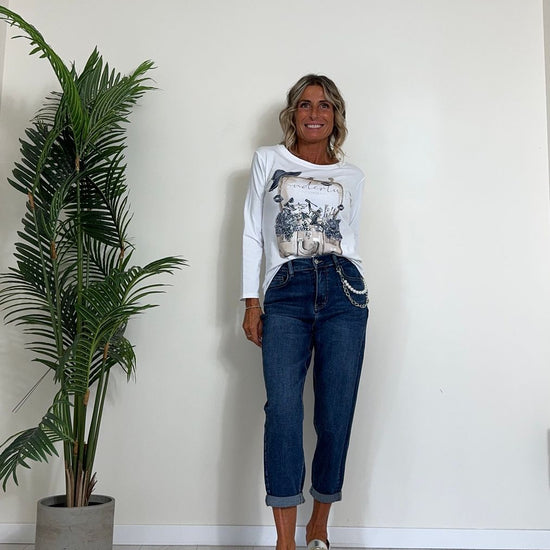 DAFNE - CHG6640P29.5 - JEANS CON CATENA STACCABILE, ELASTICO RETRO, BAGGY FIT