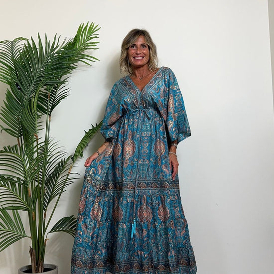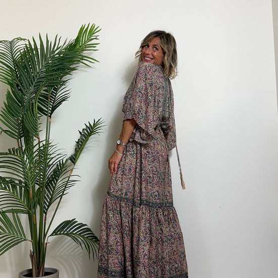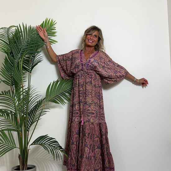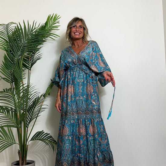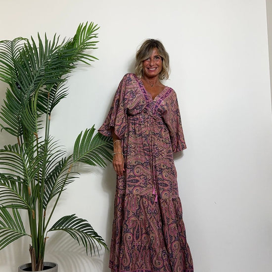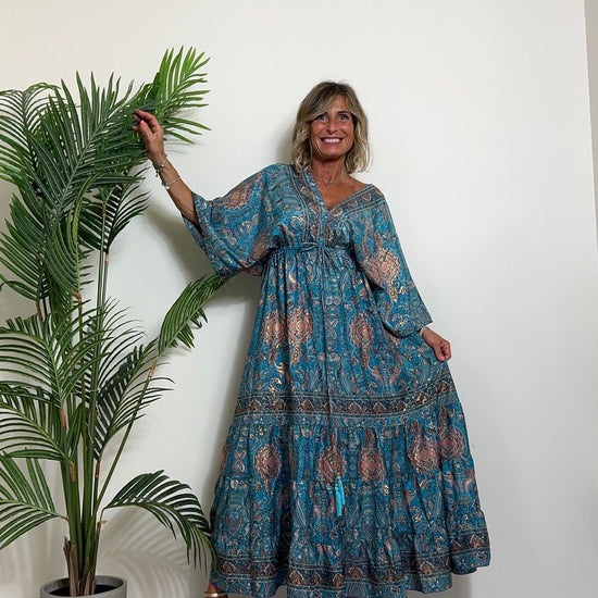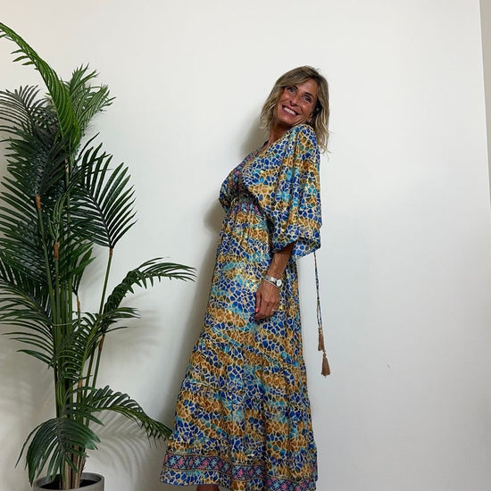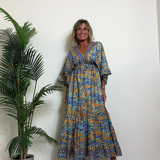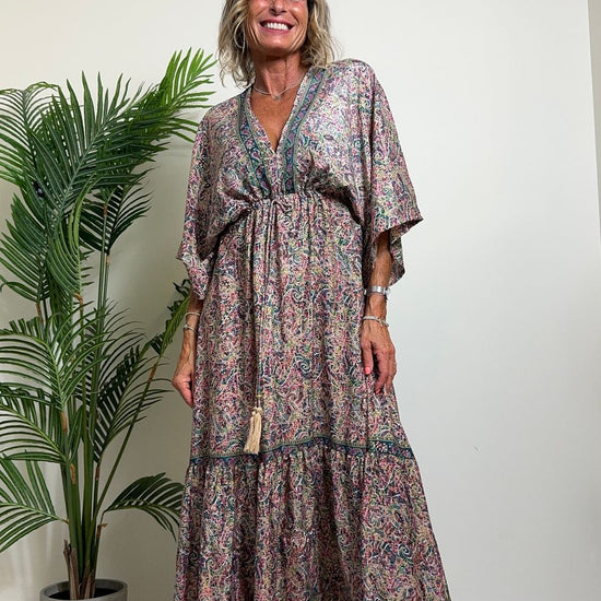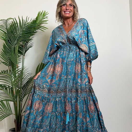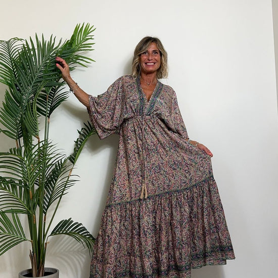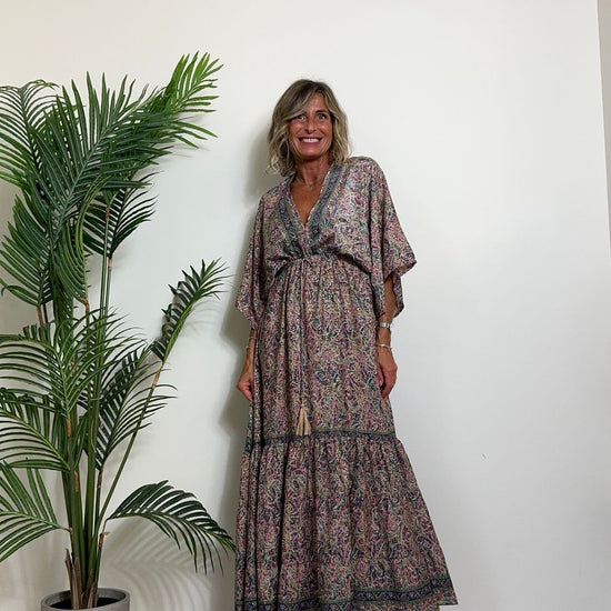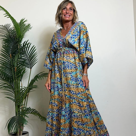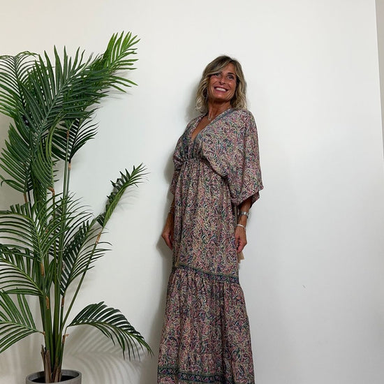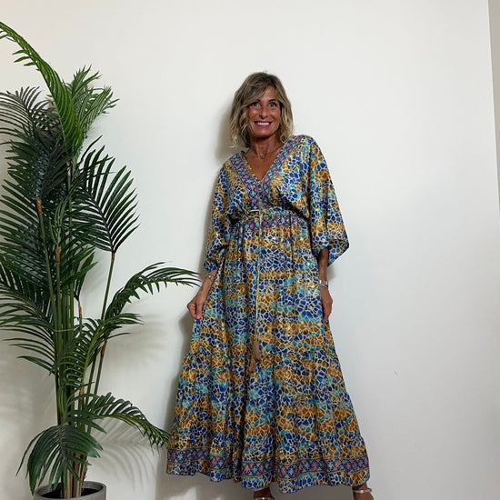DAFNE - FK132P29 - ABITO FORMENTERA LUNGO 50%SETA %0%VISCOSA MANICA KIMONO ELASTICO BASSO
