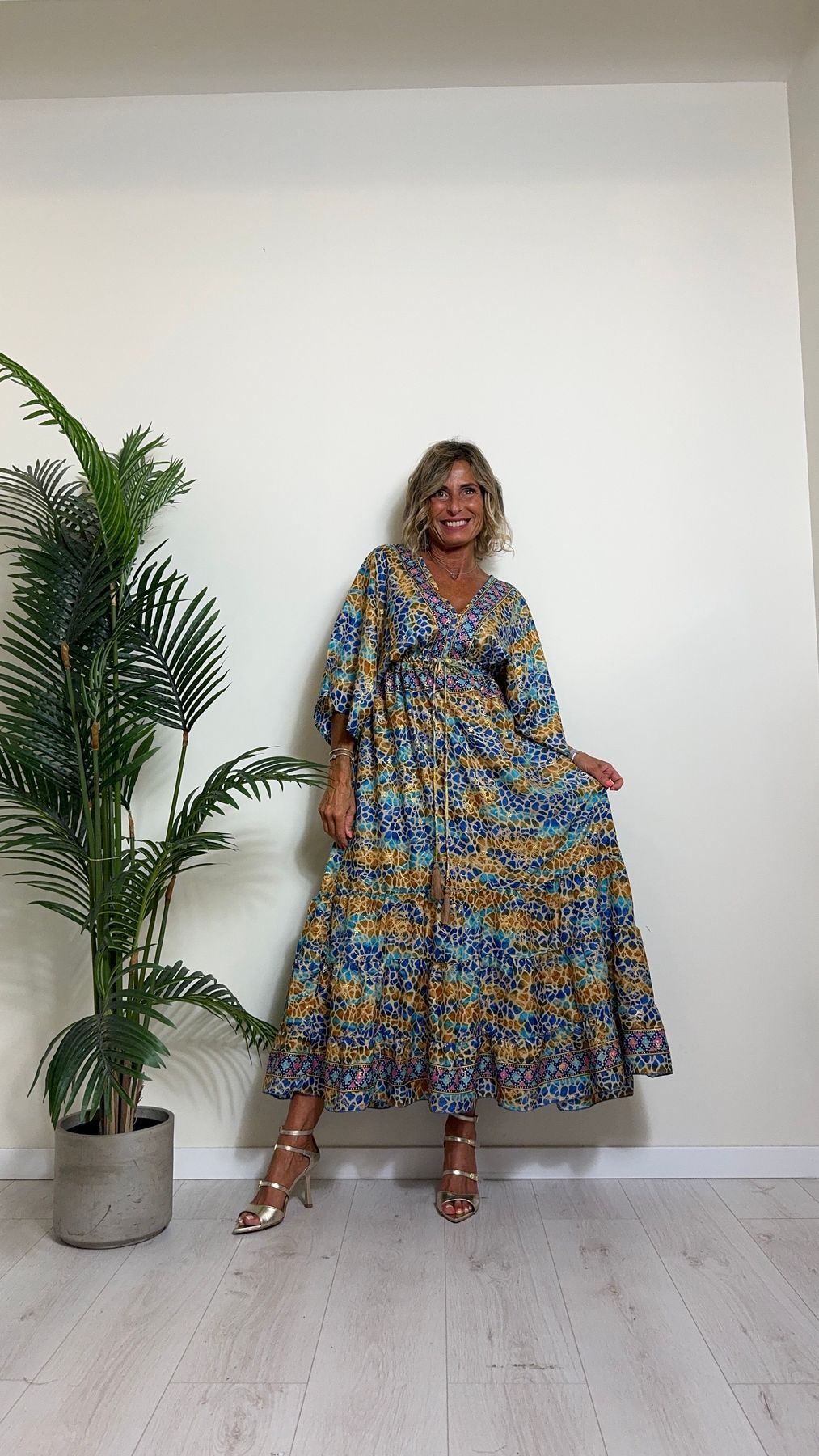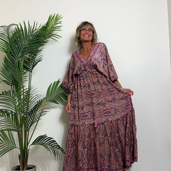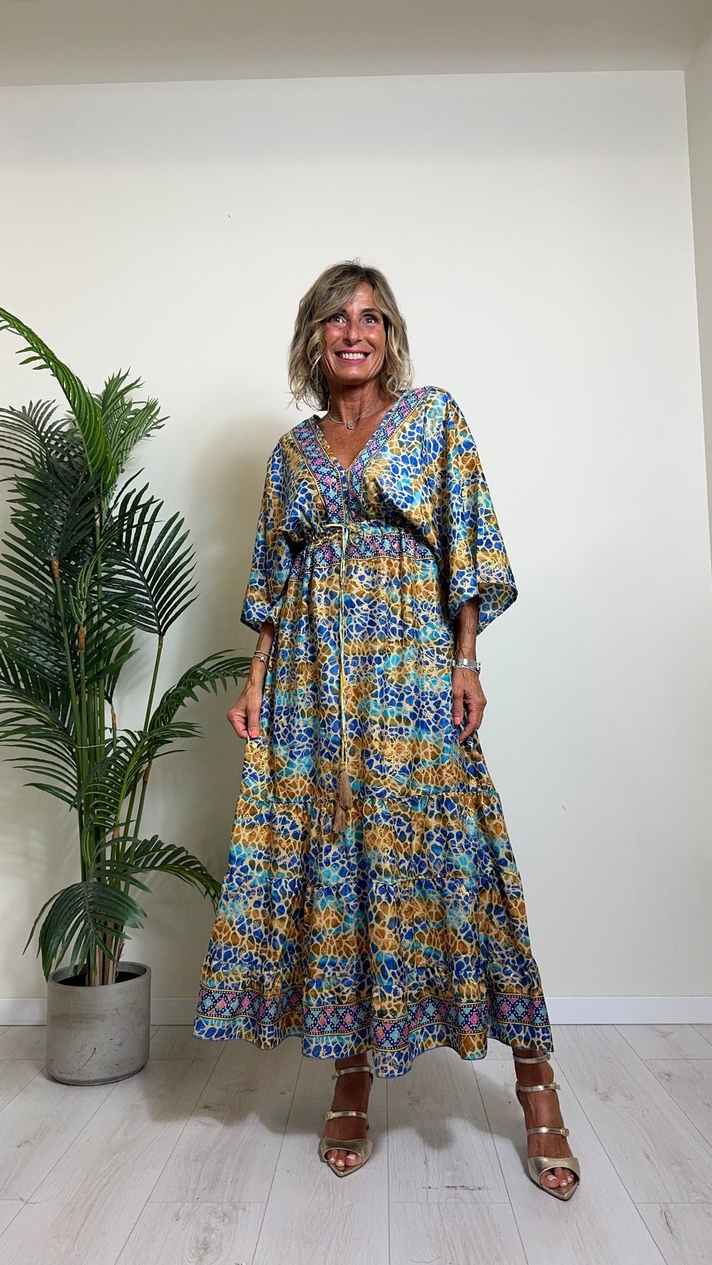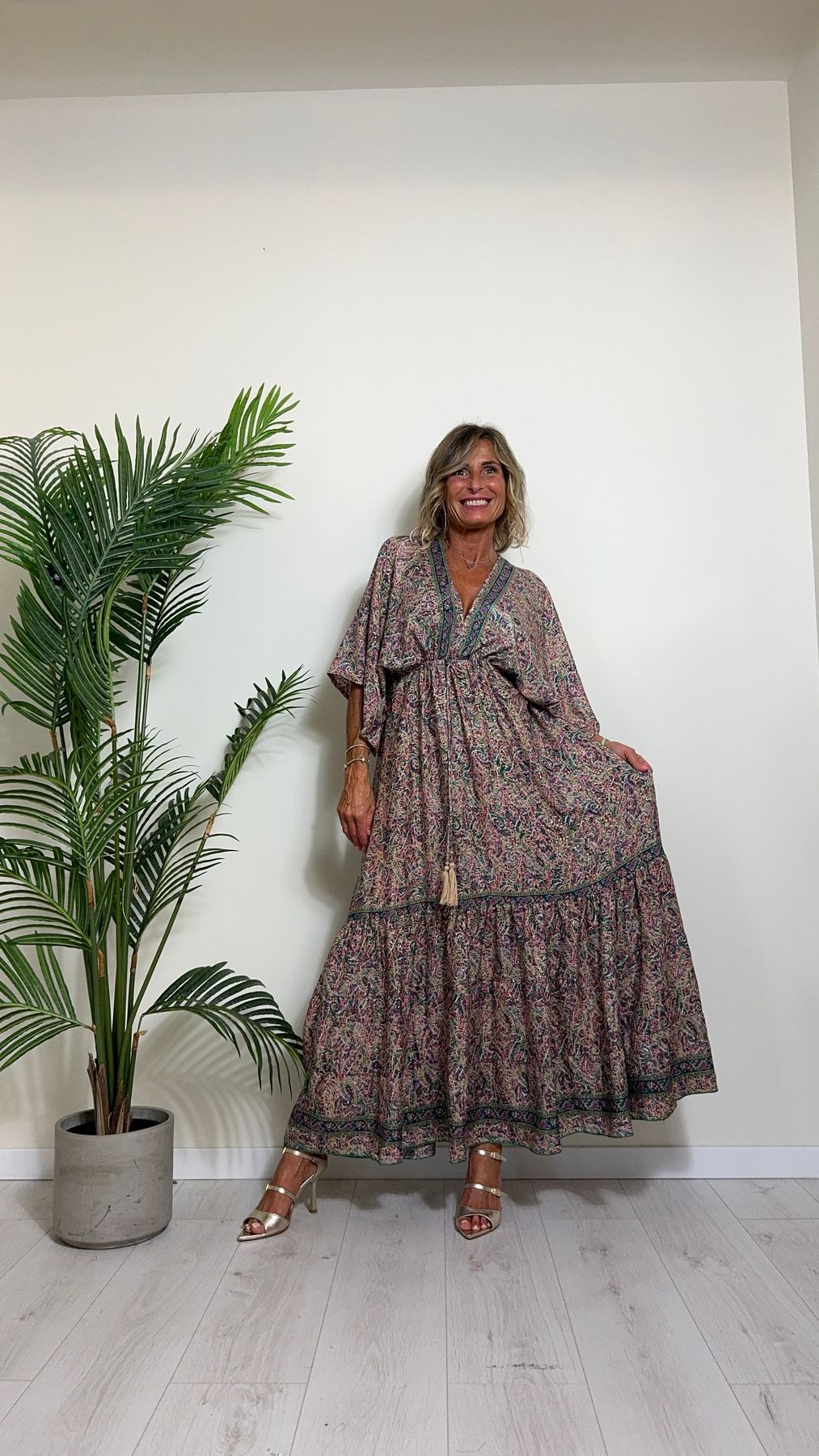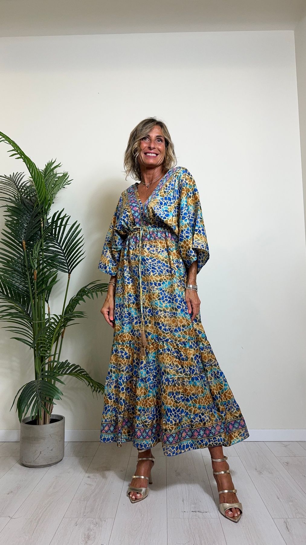 DAFNE - FK132P29 - ABITO FORMENTERA LUNGO 50%SETA %0%VISCOSA MANICA KIMONO ELASTICO BASSO