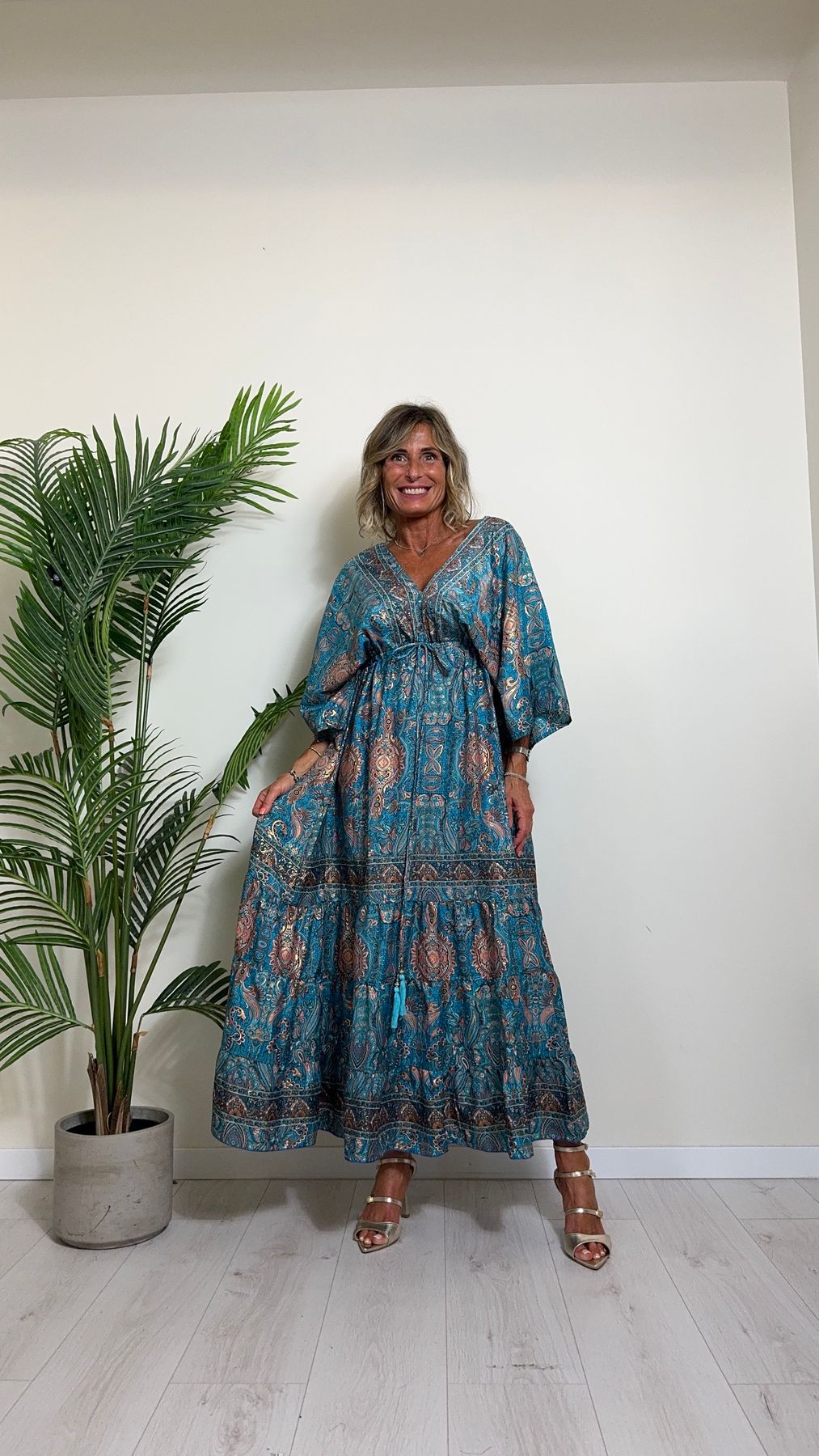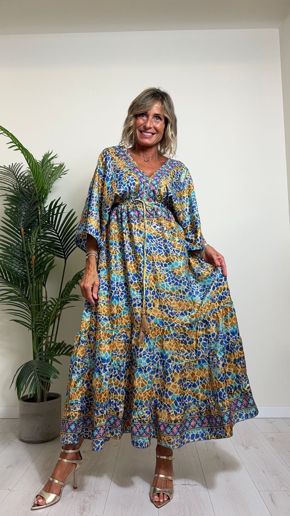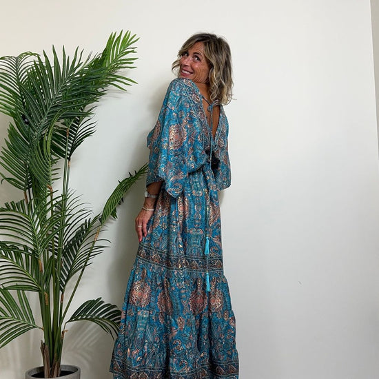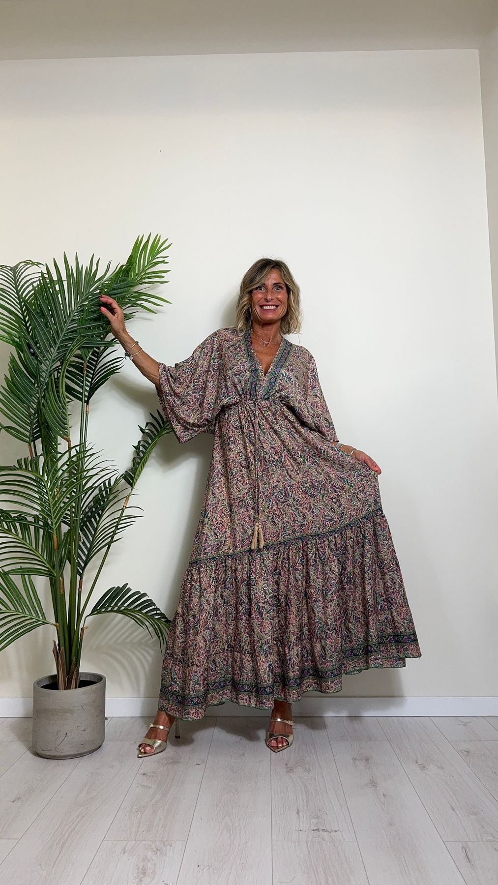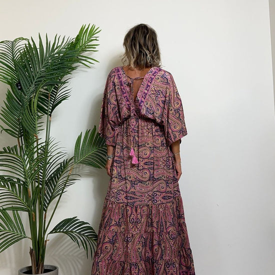 DAFNE - FK132P29 - ABITO FORMENTERA LUNGO 50%SETA %0%VISCOSA MANICA KIMONO ELASTICO BASSO