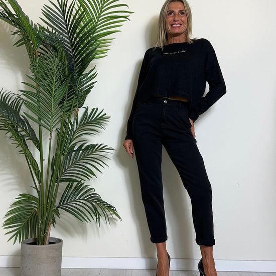 DAFNE - I660P26 - MAGLIA VISCOSA RICAMO "ALLE COSE BELLE" CON PROFILI LUREX