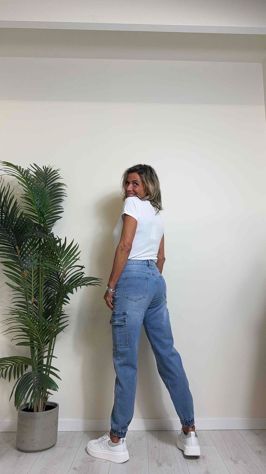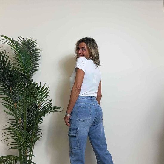 DAFNE - JE2496P26 - JEANS CARGO CON ORLO ELASTICO POLSINI E CUCITURE