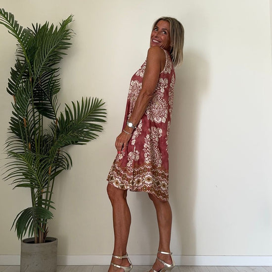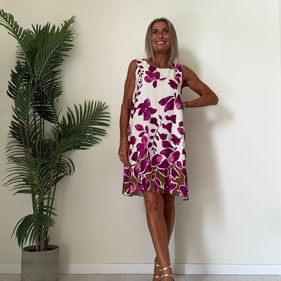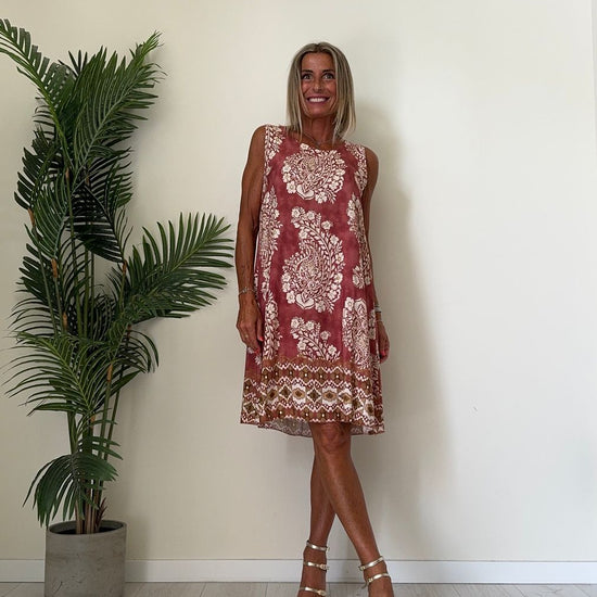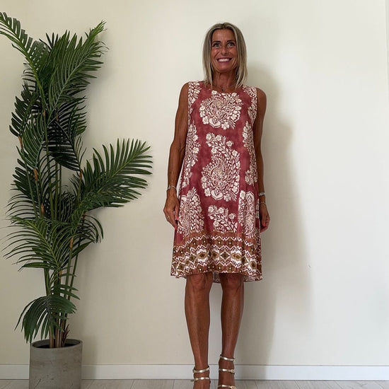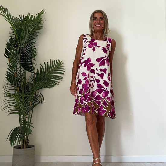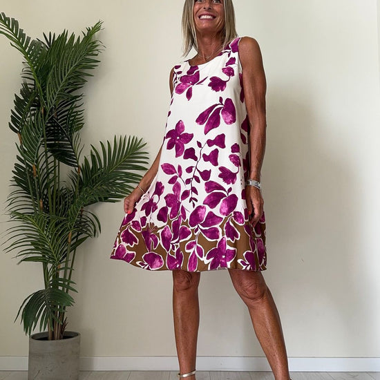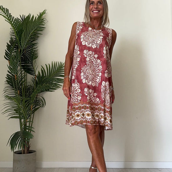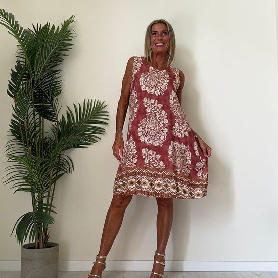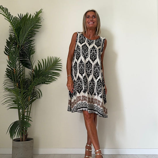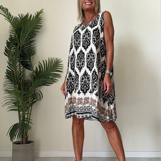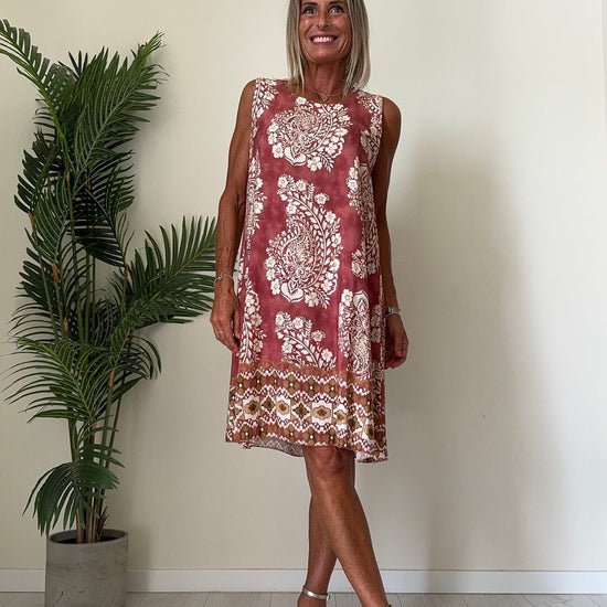 DAFNE - U9520P26 - ABITO 100%VISCOSA FANTASIA, SCOLLO TONDO E SPALLA LARGA