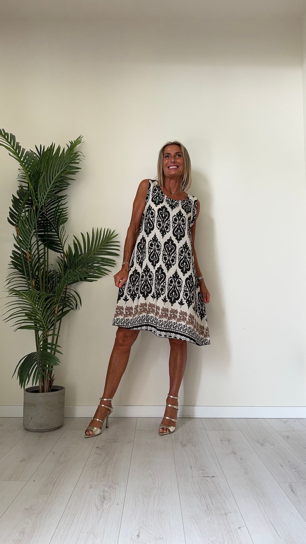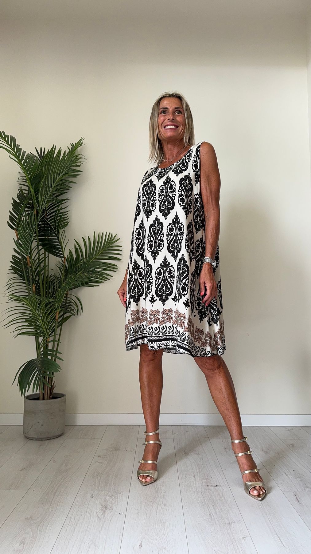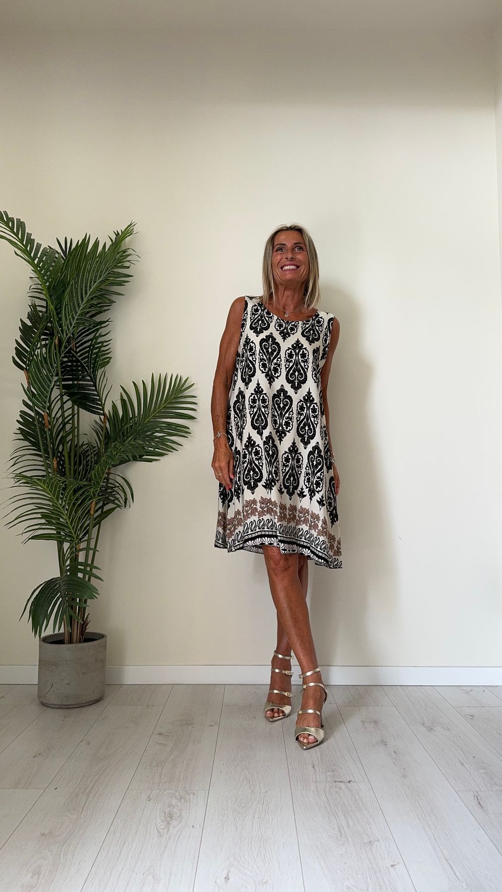 DAFNE - U9520P26 - ABITO 100%VISCOSA FANTASIA, SCOLLO TONDO E SPALLA LARGA
