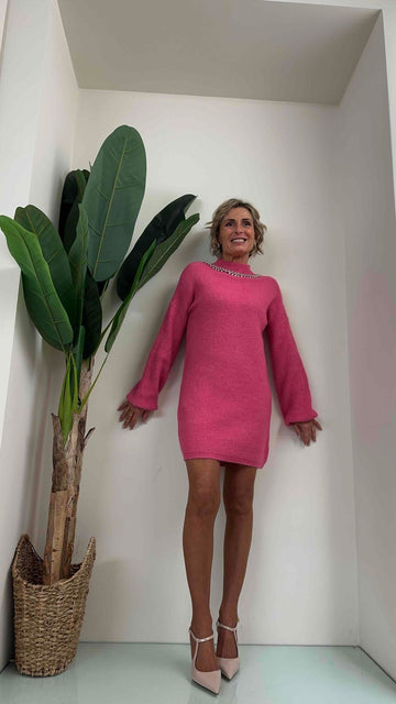 DAFNE - ZM1808P29 - ABITO FLUFFY GIROCOLLO BOULE E CRISTALLI, 43%VISCOSA
