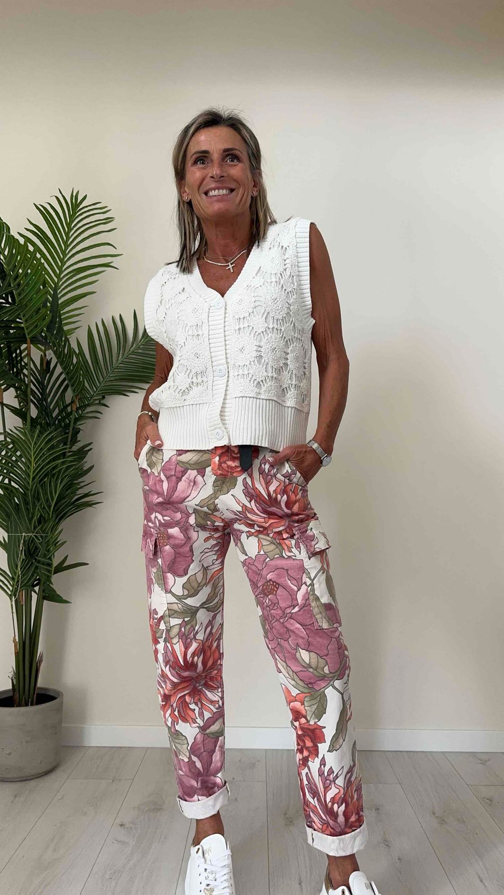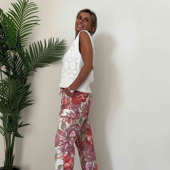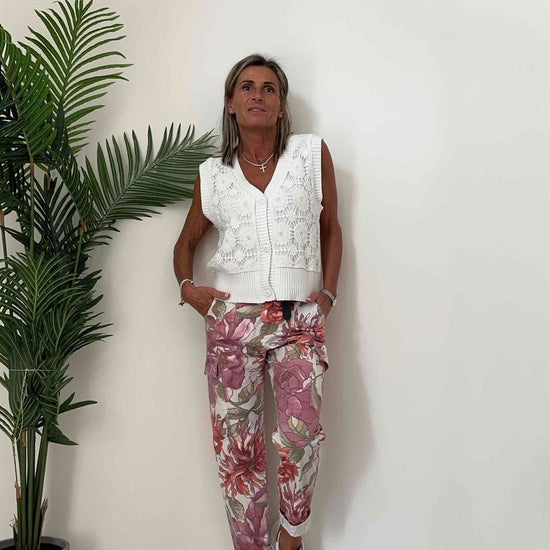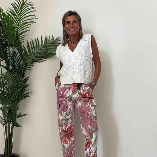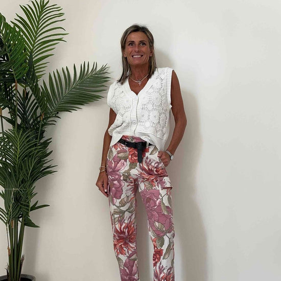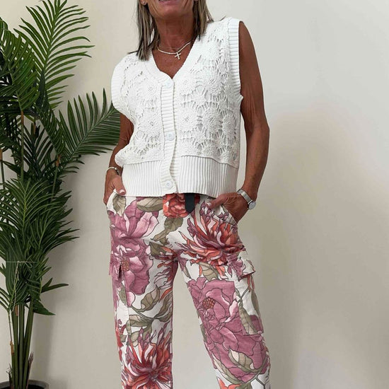 DAFNE - ZM37000P28 - GILET 100% COTONE, RICAMO PIZZO MACRAME' SOVRAPPOSTO