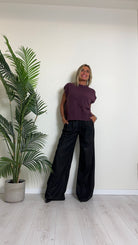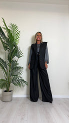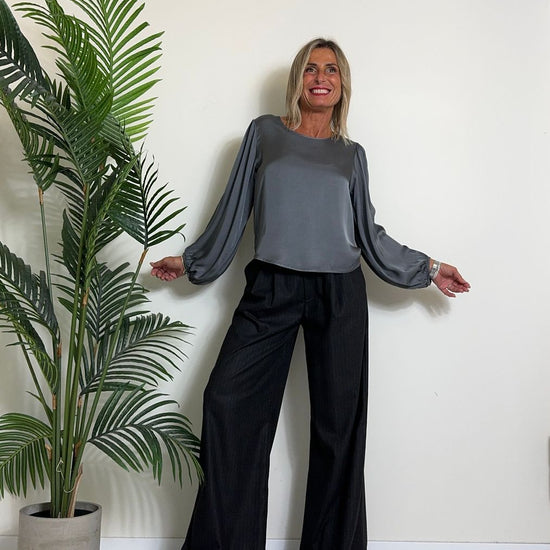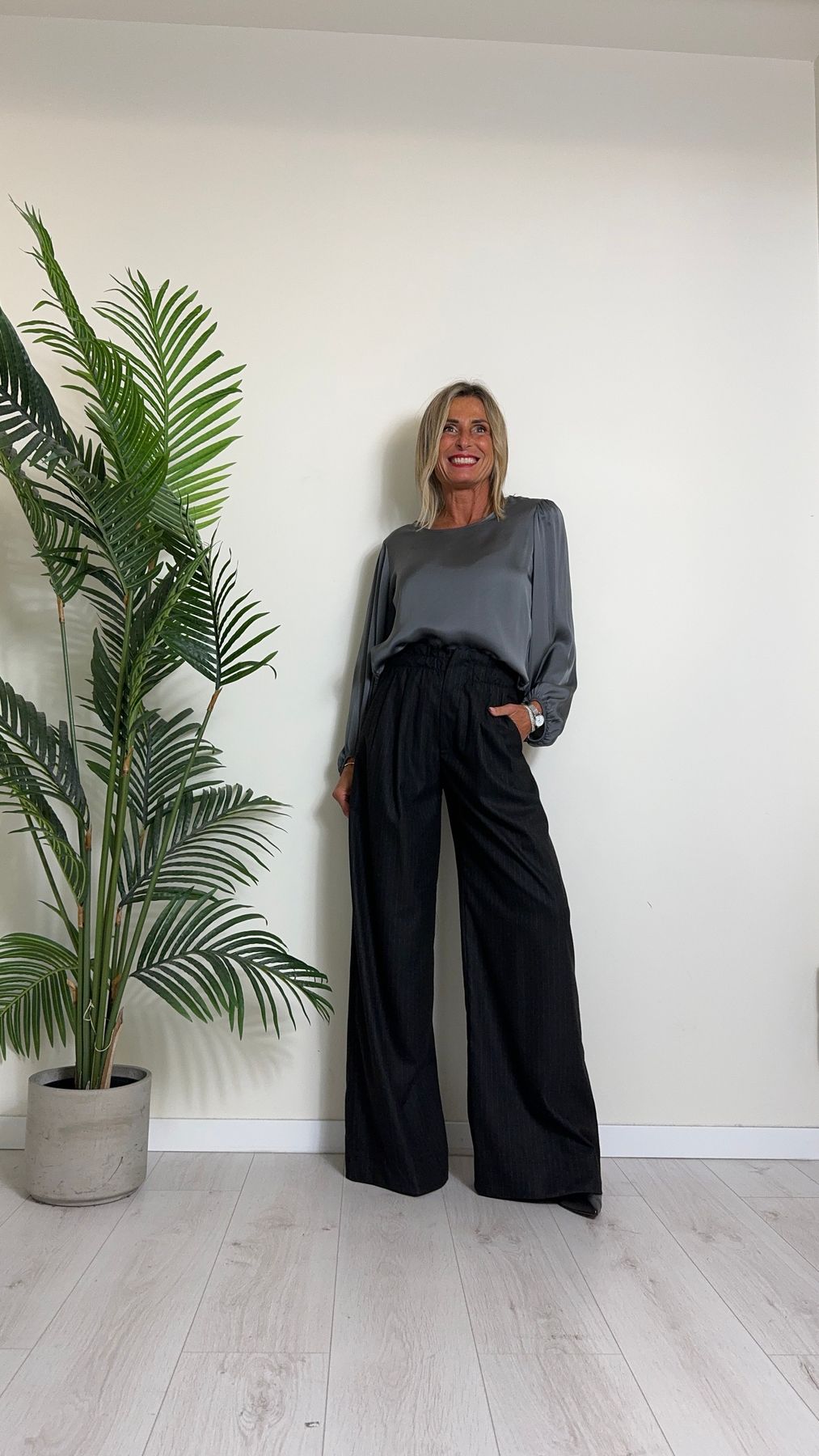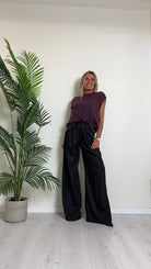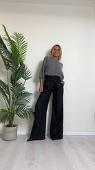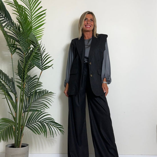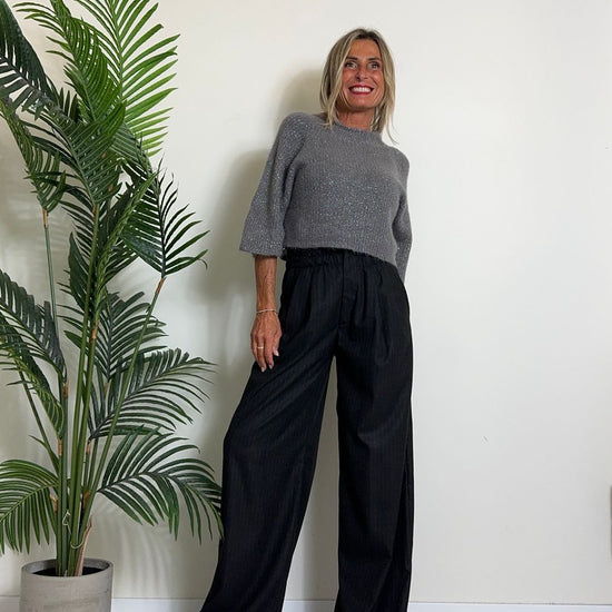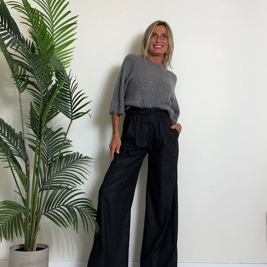 D'ELLE - 1953 - PANTALONE AMPIO, GESSATO IN POLIVISCOSA, VITA ELASTICATA CON TAGLIO VIVO