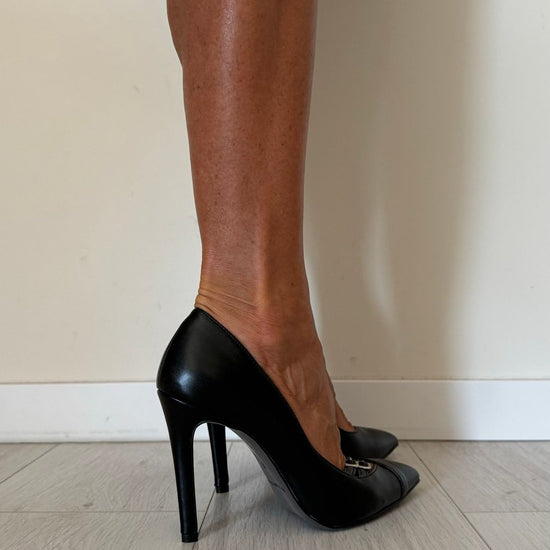 DIVINE FOLLIE - AI63/00481 - DECOLLETEE PELLE, SCOLLO A CUORE CON DOPPIE FIBBIETTE, TACCO 10 CM