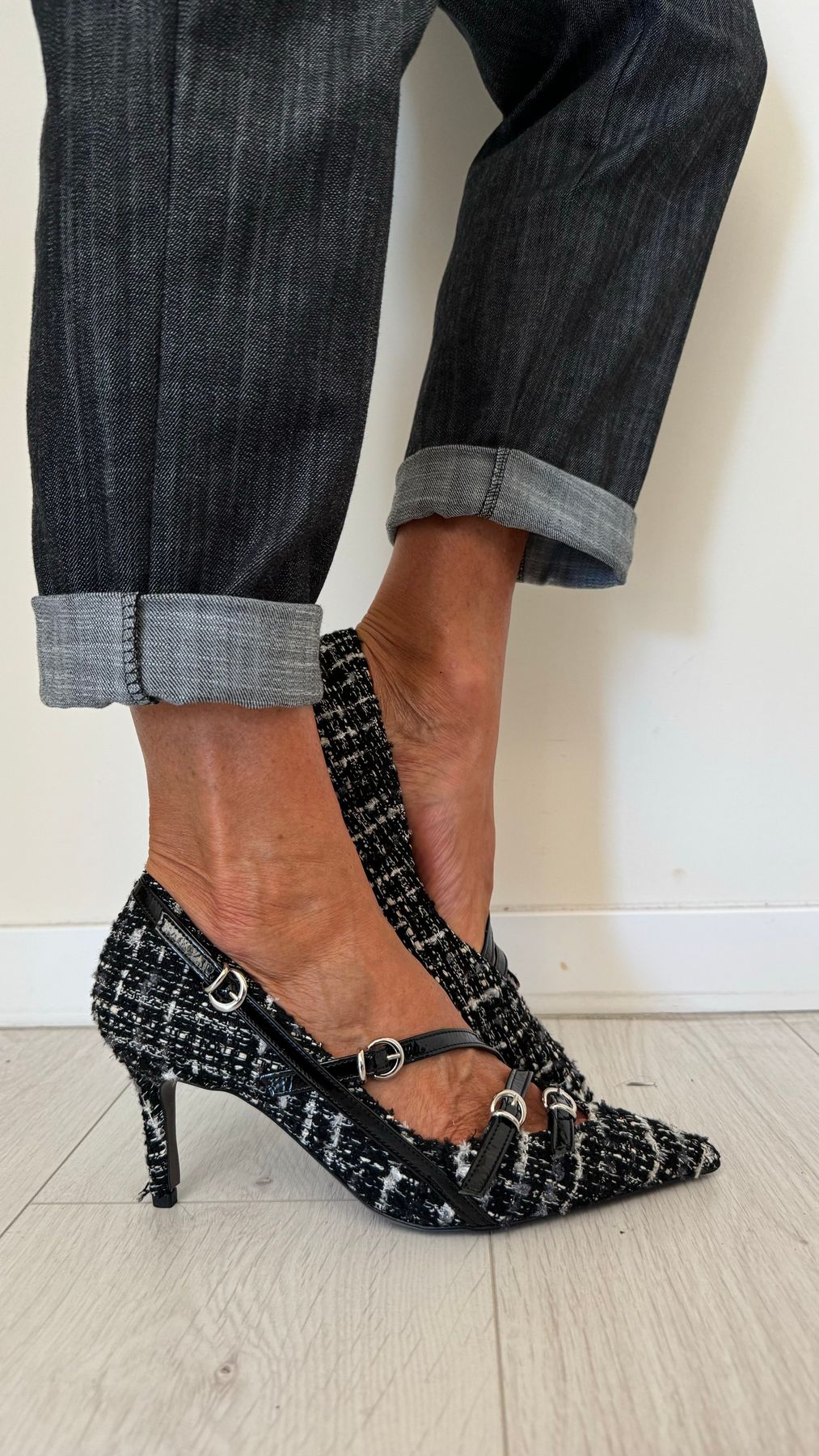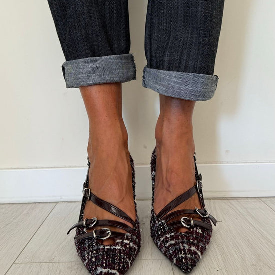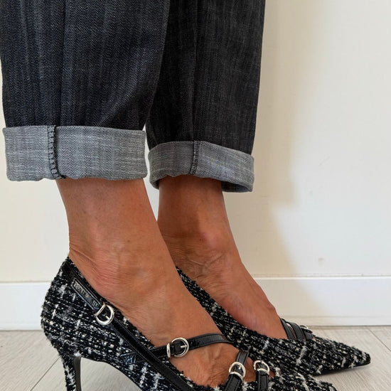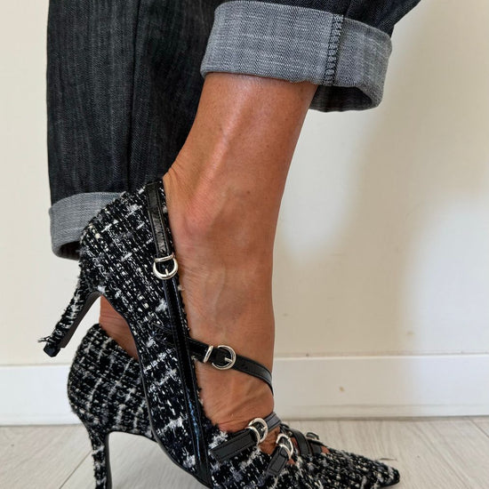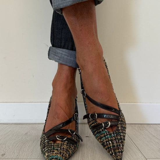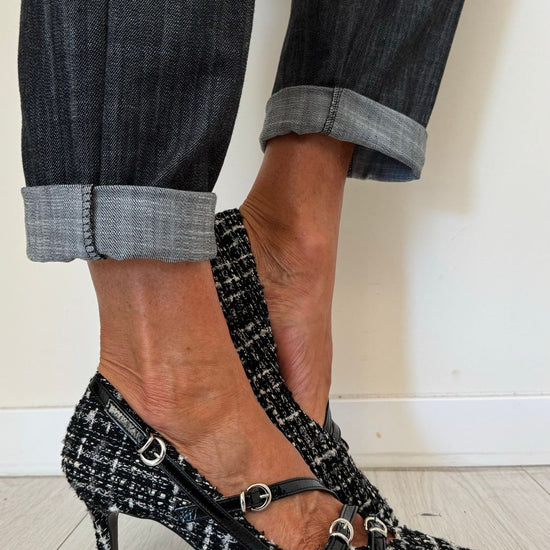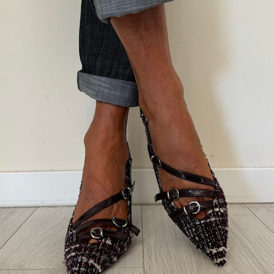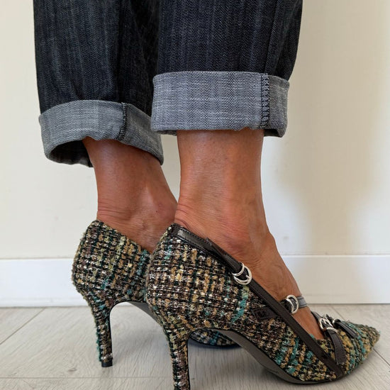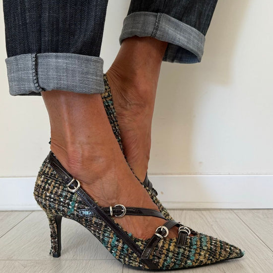 DIVINE FOLLIE - AI63/1622AP45 - DECOLLETEE CON TRE CINTURINI FANTASIA TARTAN, TACCO 7 CM
