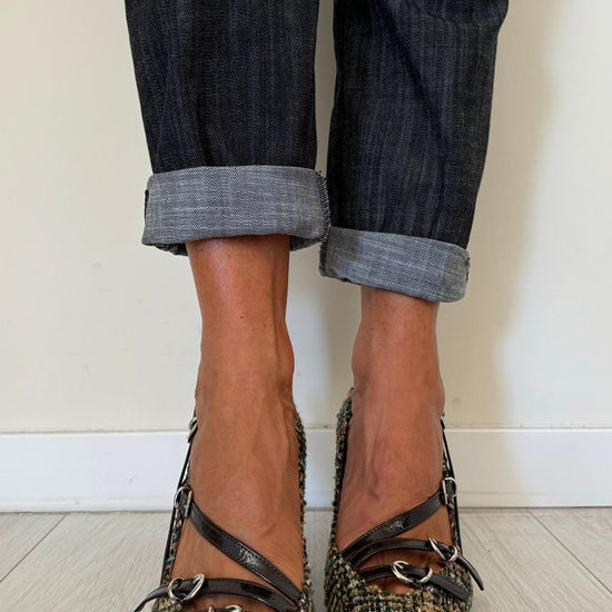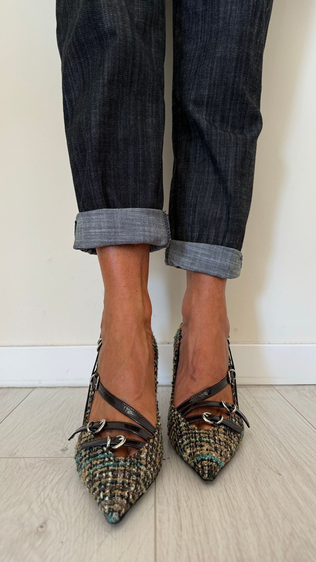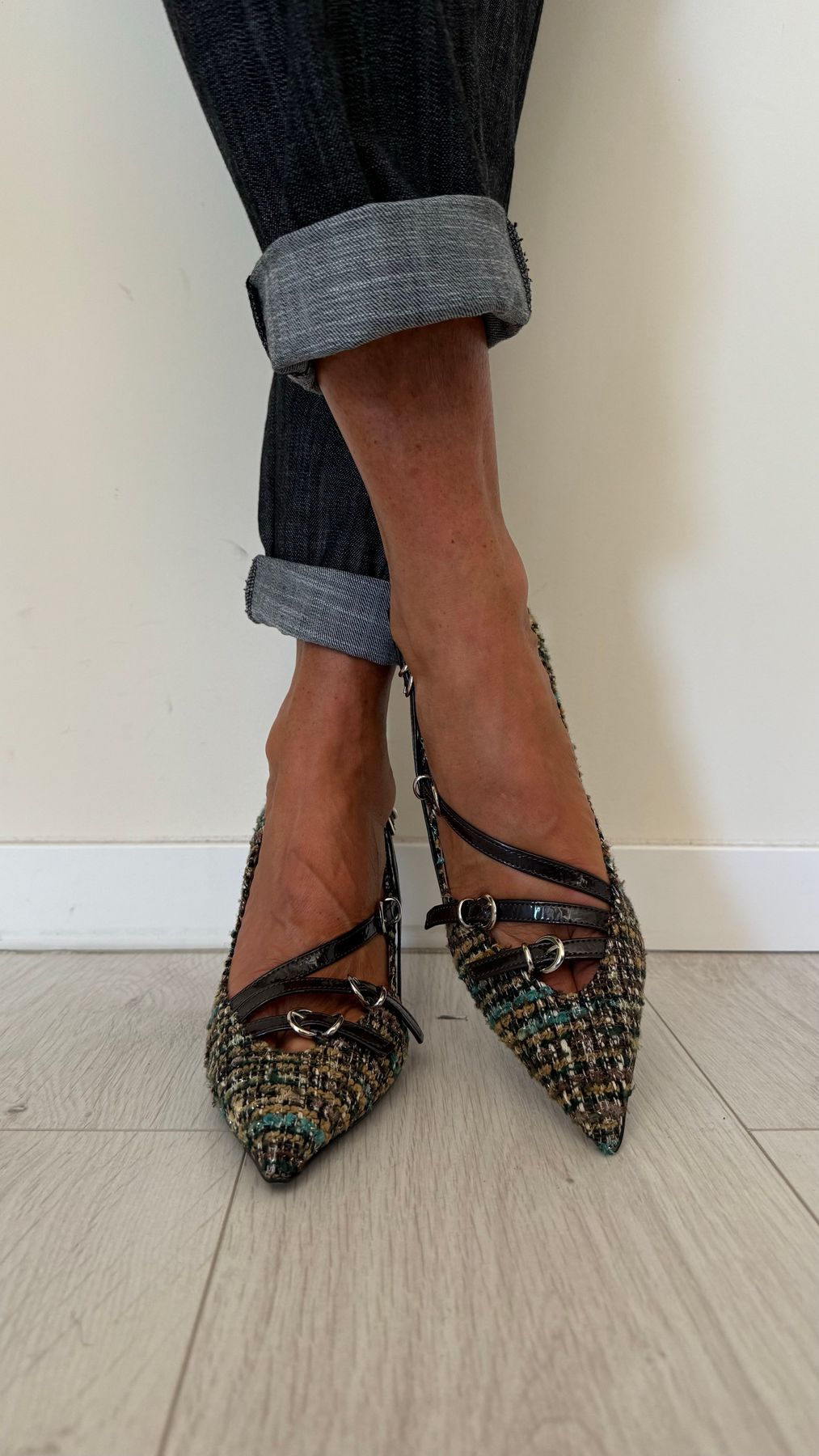 DIVINE FOLLIE - AI63/1622AP45 - DECOLLETEE CON TRE CINTURINI FANTASIA TARTAN, TACCO 7 CM