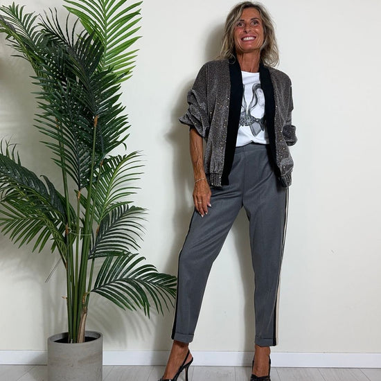 GIORGIA & JHONS - 60105FW24 - PANTALONE POLIVISCOSA CON BANDE LATERALI