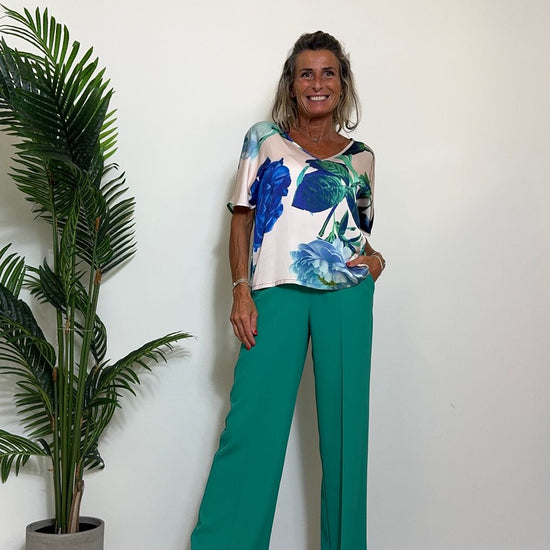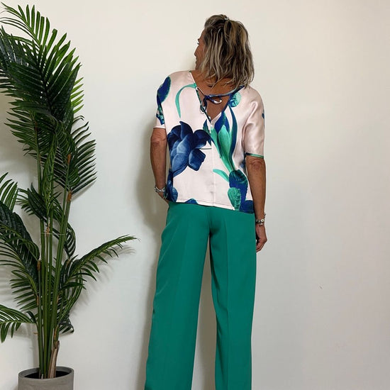 GIORGIA & JHONS - 60181SS24 - BLUSA 100%VISCOSA FANTASIA SCOLLO A V CON LACCETTO RETRO