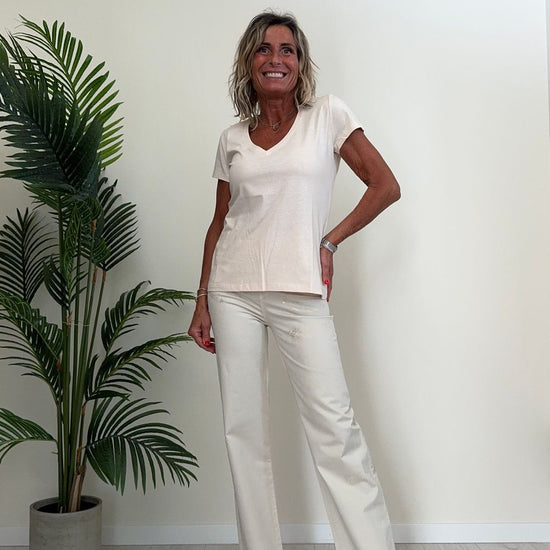 GIORGIA & JHONS - 60205SS24 - T-SHIRT SCOLLO A V GLITTER SILVER, 100% COTONE