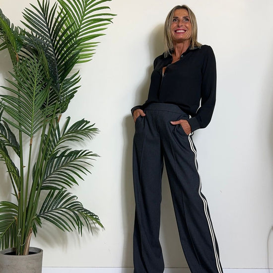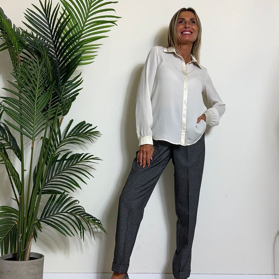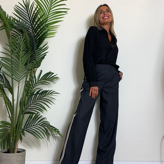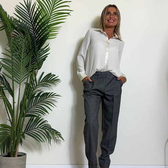 GIORGIA & JHONS - 60296FW24 - CAMICIA CREPE CON PROFILI, COLLETTO E POLSI IN RASO