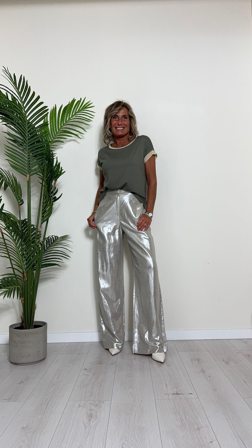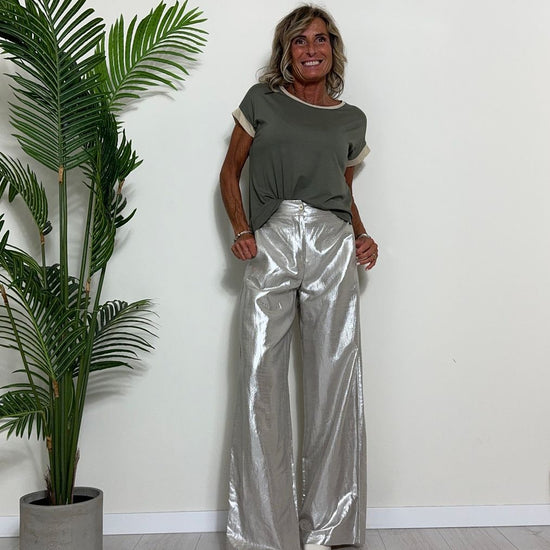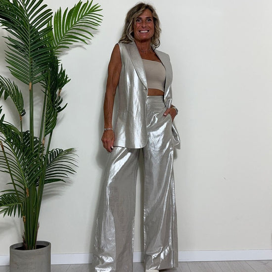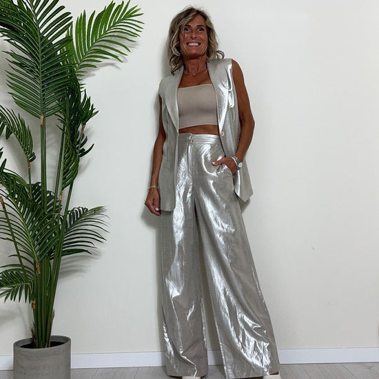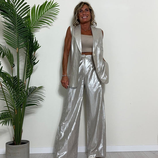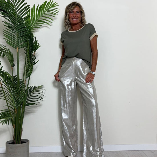 GIORGIA & JHONS - 60353SS24 - PANTALONE PALAZZO VISCOSA(60%)/LINO(40%) LAMINATO ELASTICO RETRO