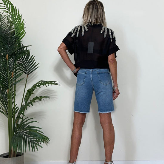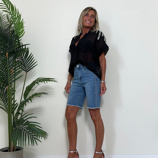 GIORGIA & JHONS - 60445SS24 - BERMUDA DENIM COMFORT STRETCH CON BORCHIETTE LATERALI