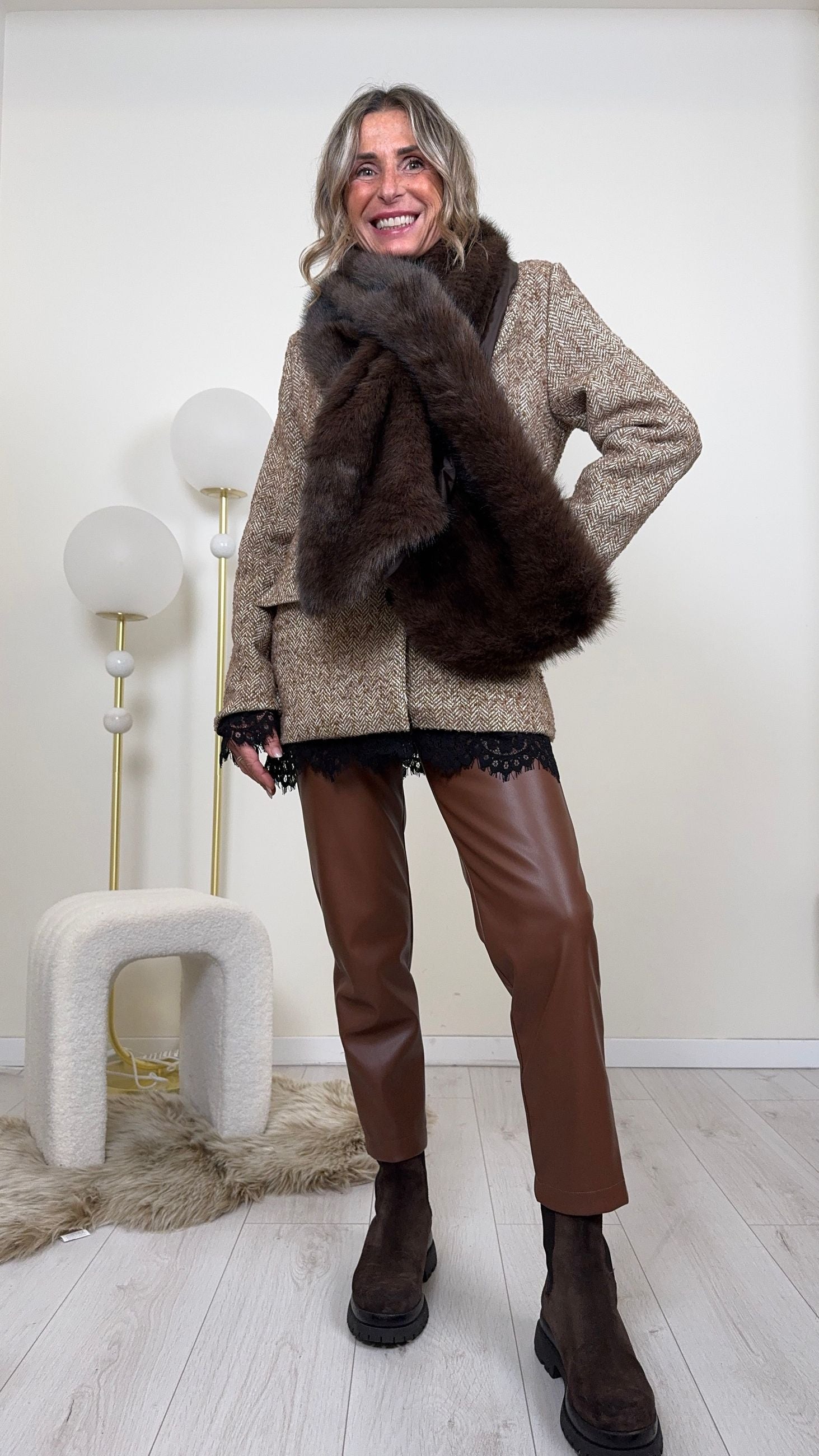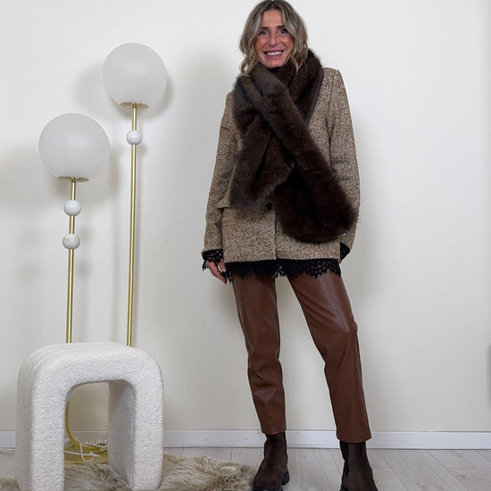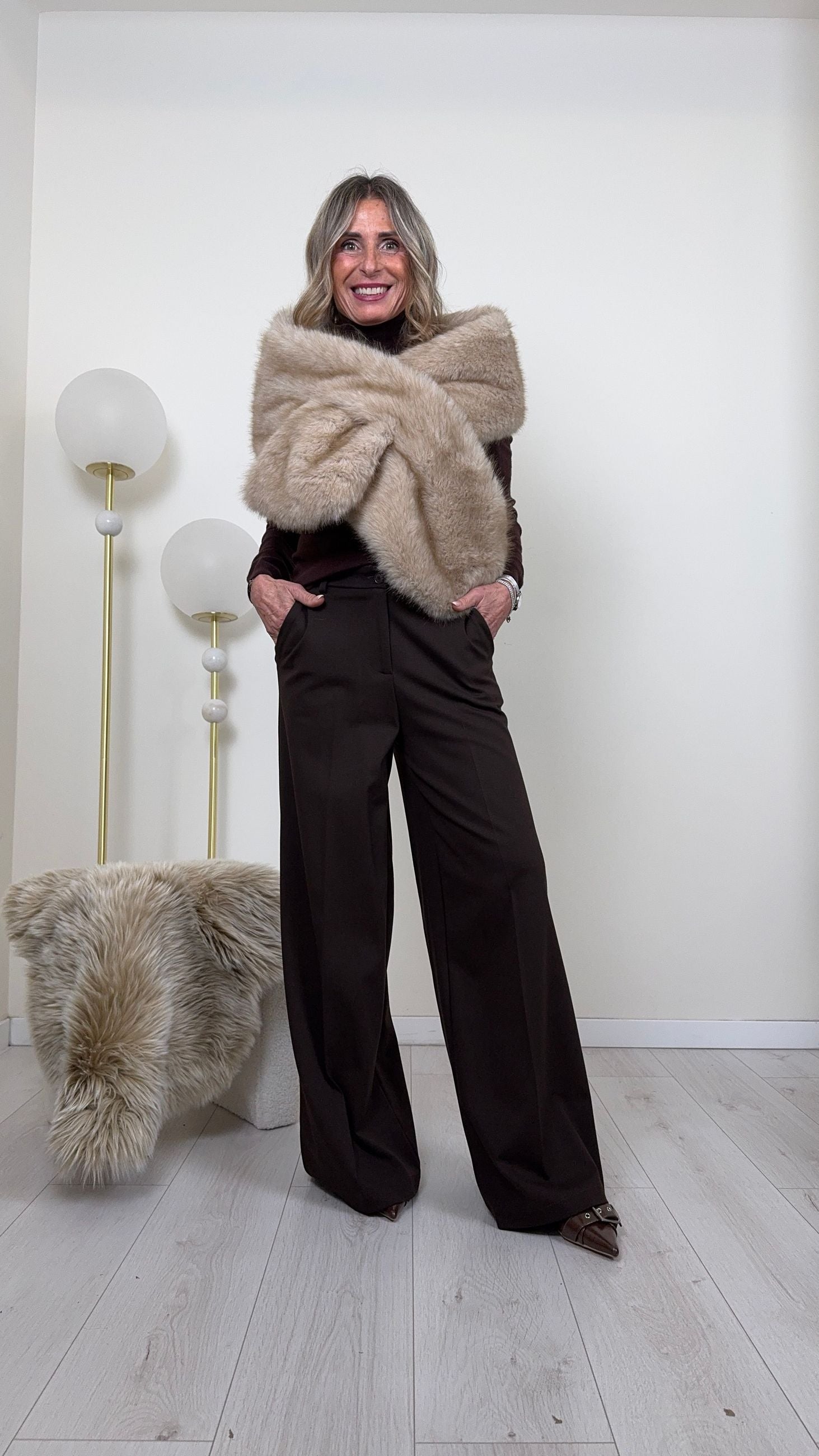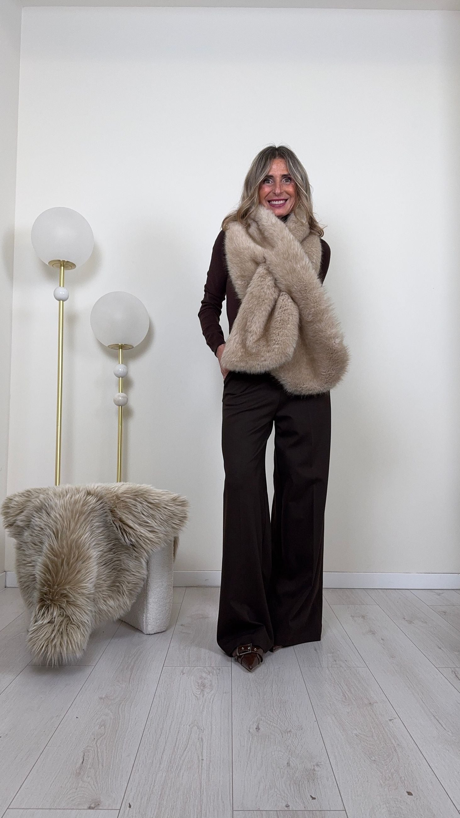 La nostra sciarpa/collo in eco-pelliccia foderata è l’accessorio invernale più desiderato: morbida, avvolgente e irresistibilmente chic.