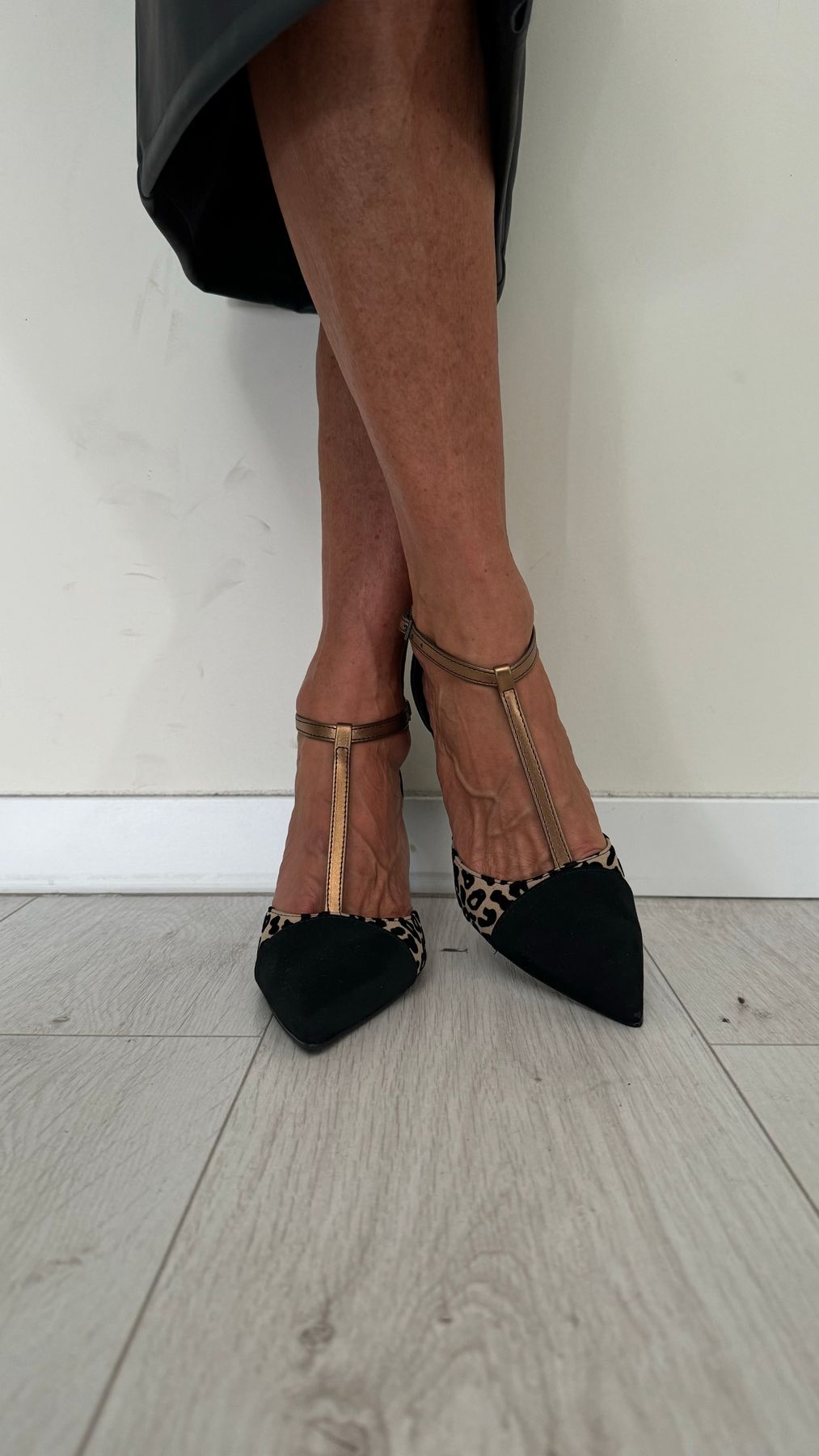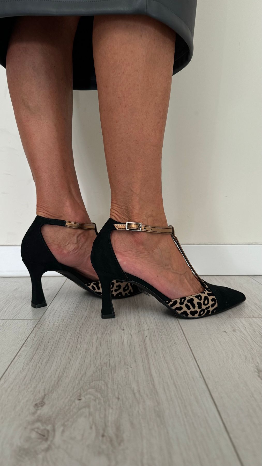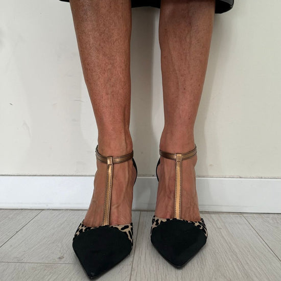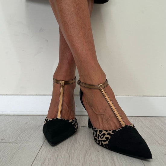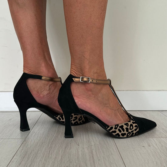 OVYE' - BIANCACAM - DECOLLETEE T-BAR CAMOSCIO ANIMALIER TACCO 8 CM