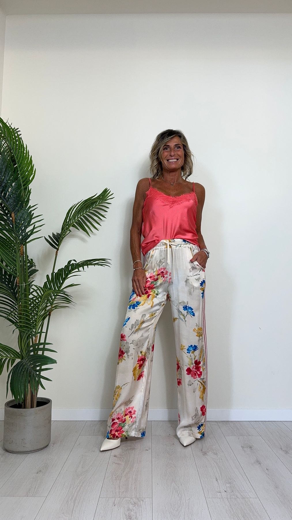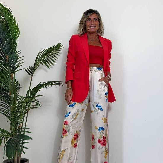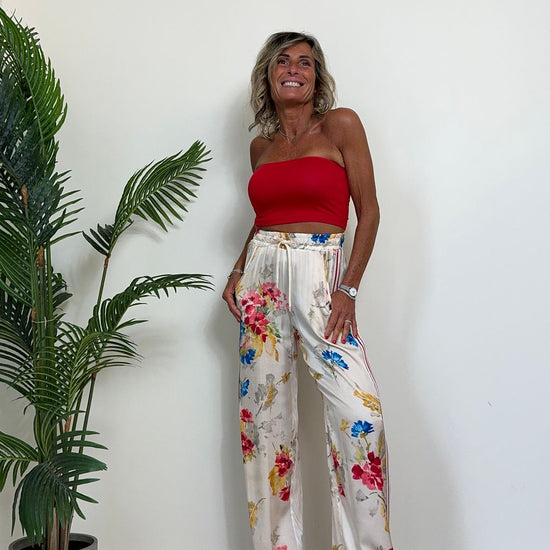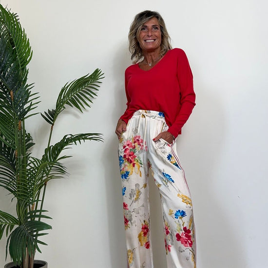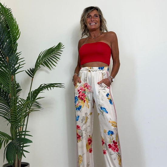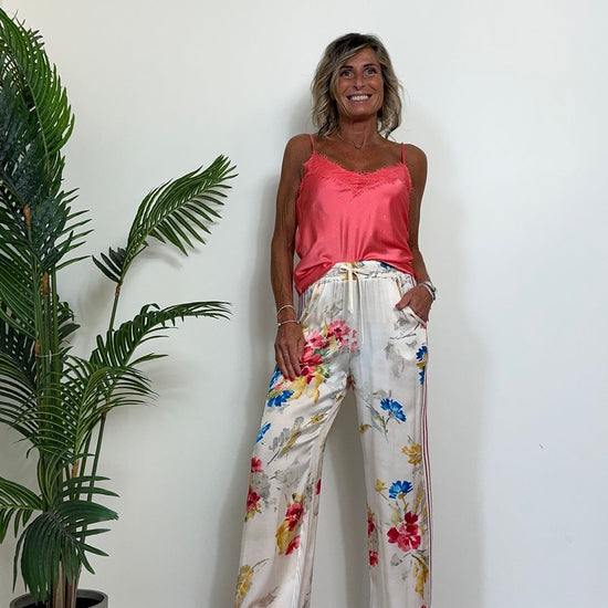 - PK1226 - PANTALONE 100%VISCOSA, FANTASIA FLOREALE CON BANDE LATERALI IN JERSEY