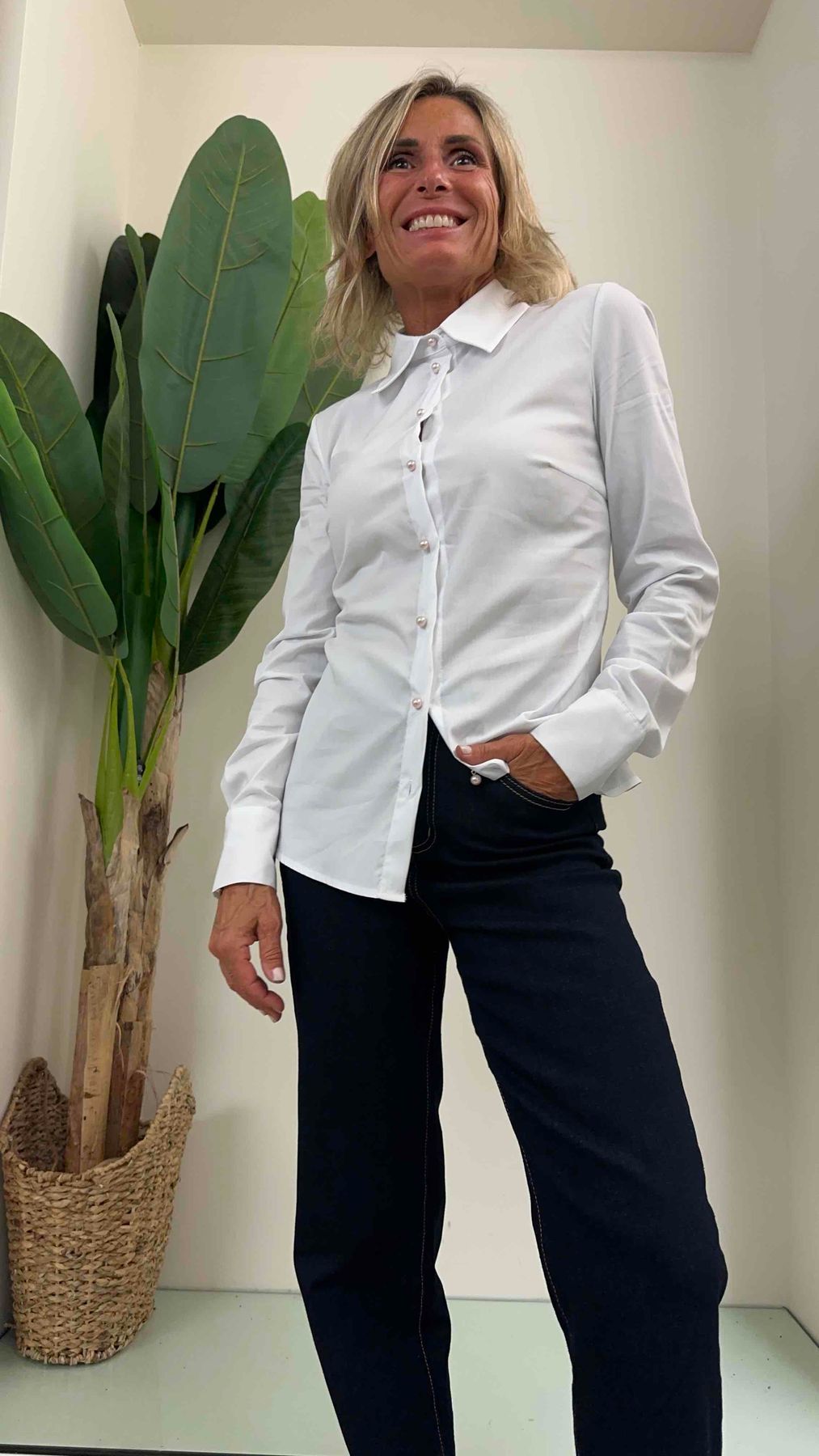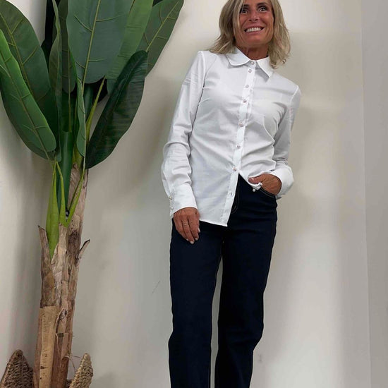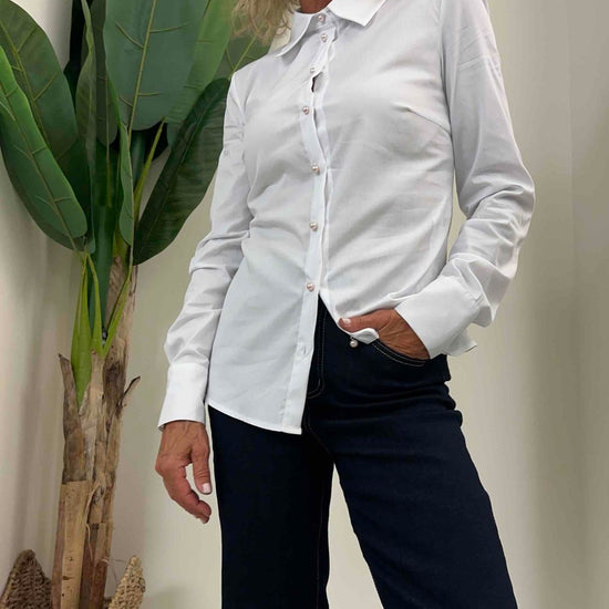 PLEASE - C08PWV6000 - CAMICIA POPELINE SLIM FIT BOTTONI PERLA