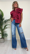 PLEASE - L0DCV9N3N - SHACKET SMANICATA CON FIORI APPLICATI E BOTTONI GIOIELLO