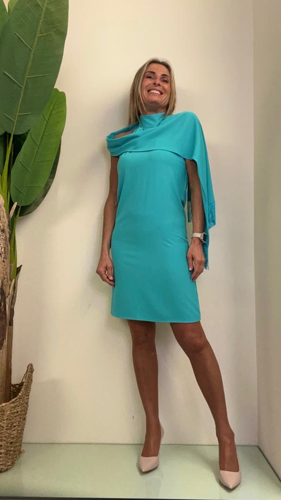 VICOLO - TE0089 - ABITO SCOLLO AMERICANA STOLA FRANGE
