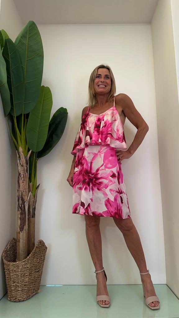VICOLO - TE1770 - ABITO VOILE FIORI CON BALZA