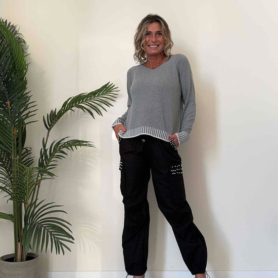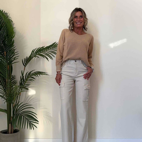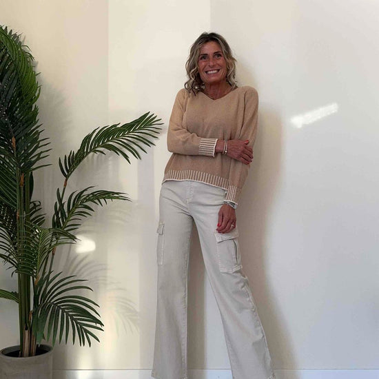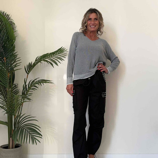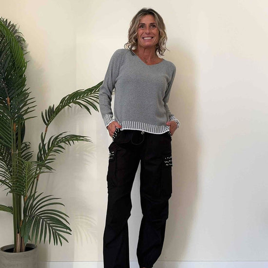 TWEED - 62007MP22 - MAGLIA COTONE GREZZO A SCATOLETTA CON SCOLLO A V