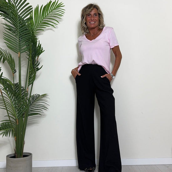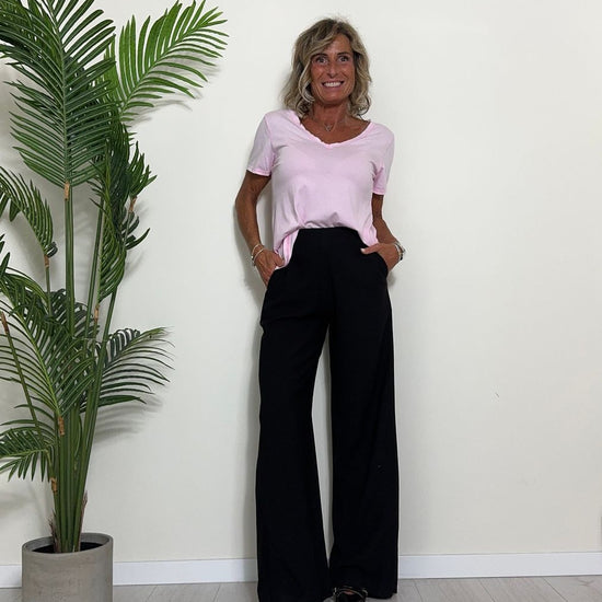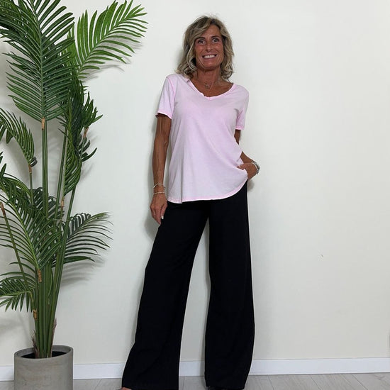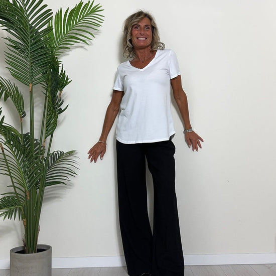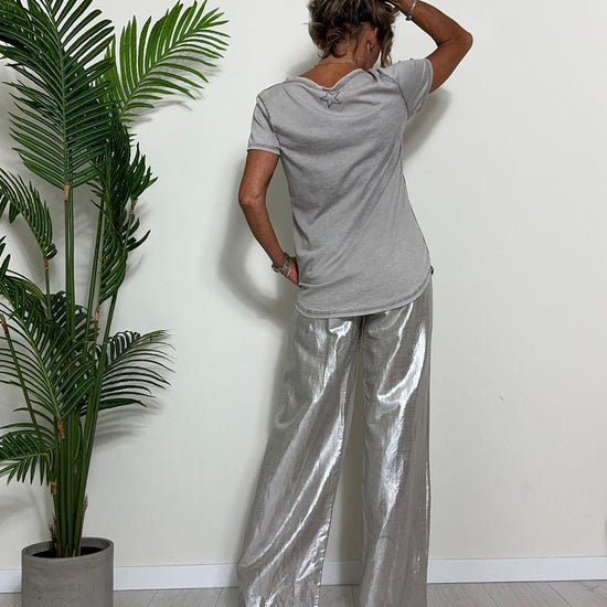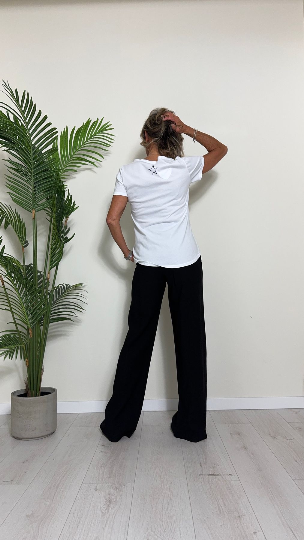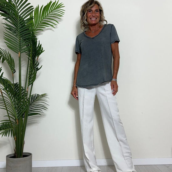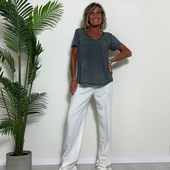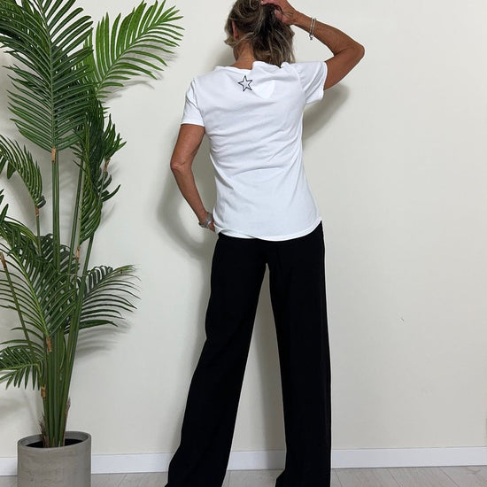 TWEED - 7585STEP12 - T-SHIRT 100%COTONE TINTO CAPO, SCOLLO A V,STONDATA CON RICAMO STELLA IN TONALITA' SULLA NUCA