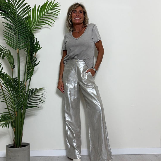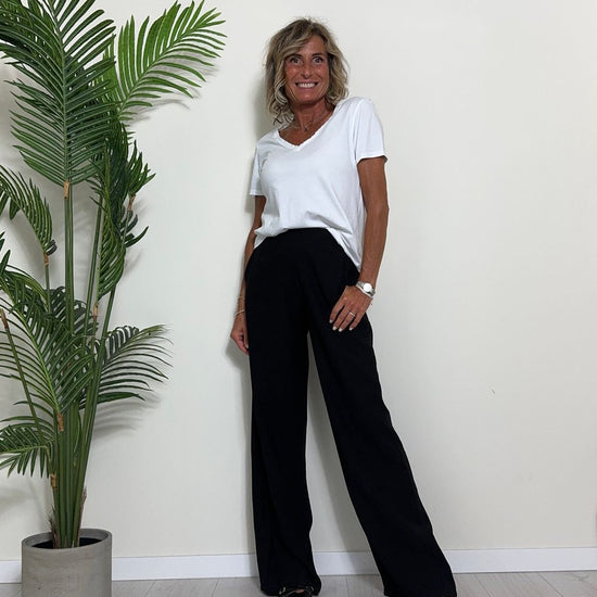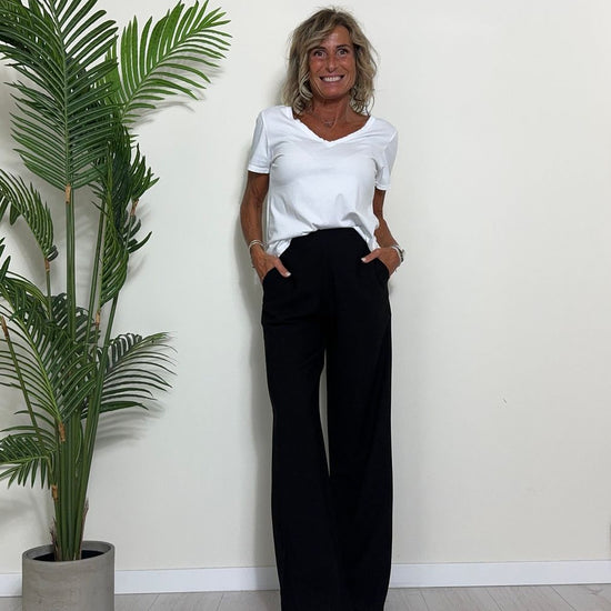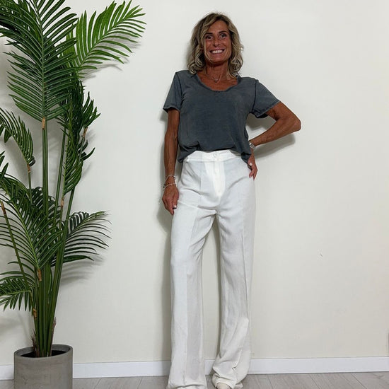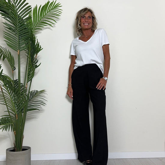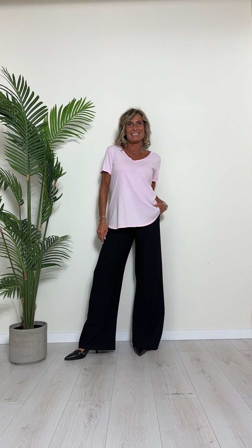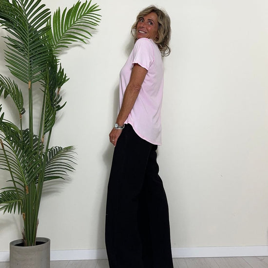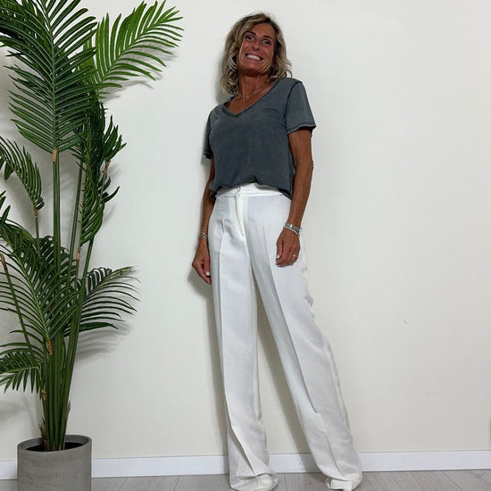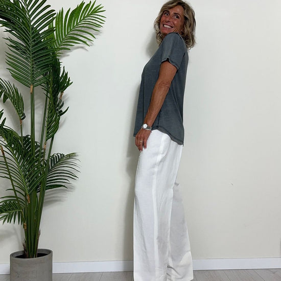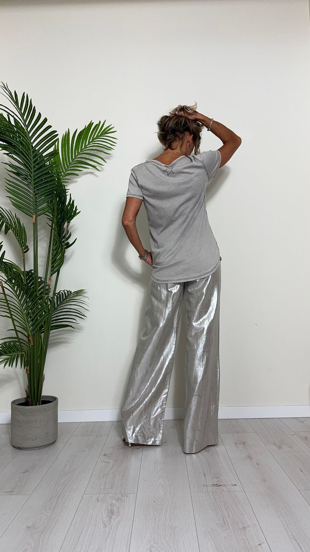 TWEED - 7585STEP12 - T-SHIRT 100%COTONE TINTO CAPO, SCOLLO A V,STONDATA CON RICAMO STELLA IN TONALITA' SULLA NUCA
