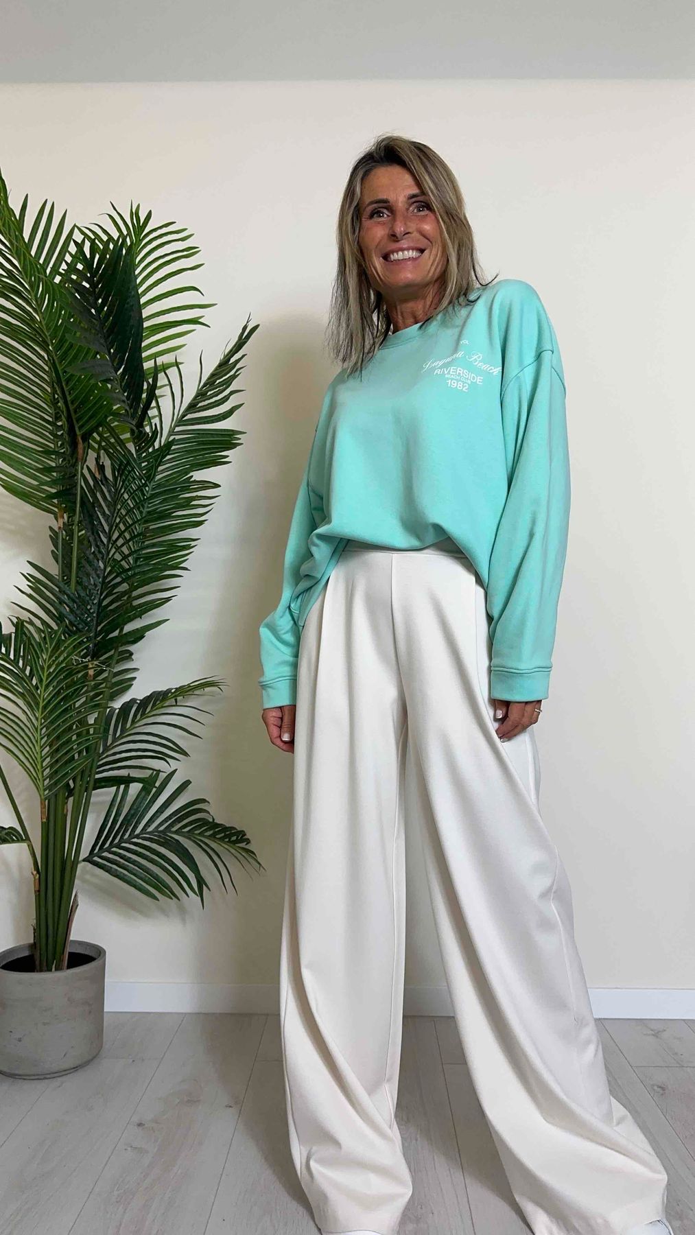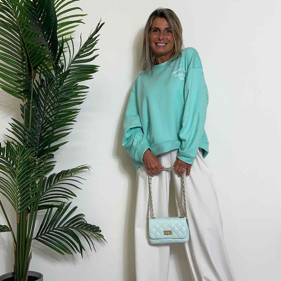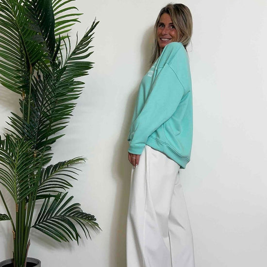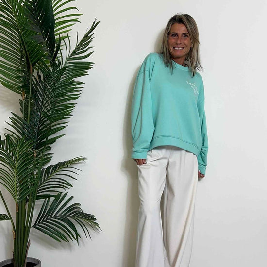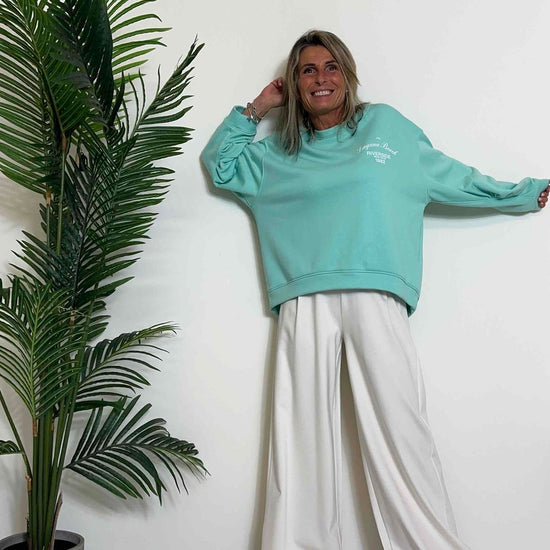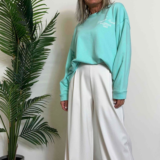 VICOLO - RB0332 - FELPA COTONE STONDATA, MANICHE PIEGHE, "LAGUNA BEACH"