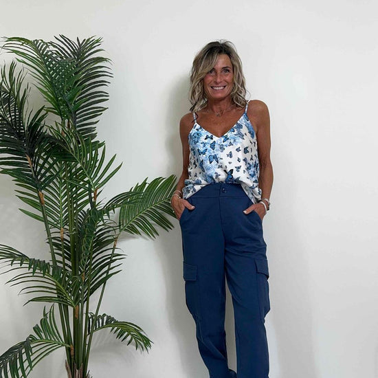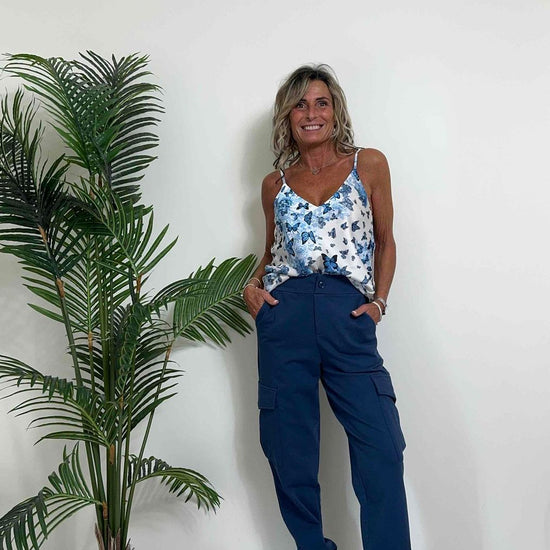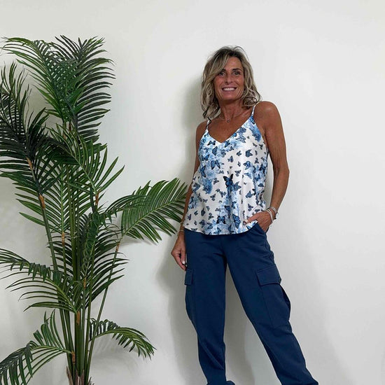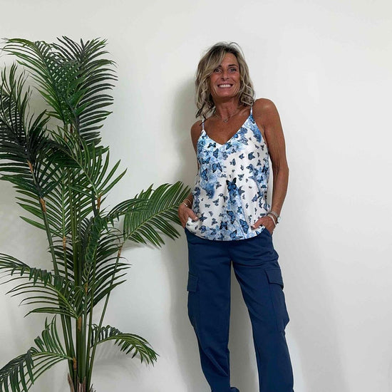 VICOLO - TB0601 - TOP RASO FANTASIA FARFALLE