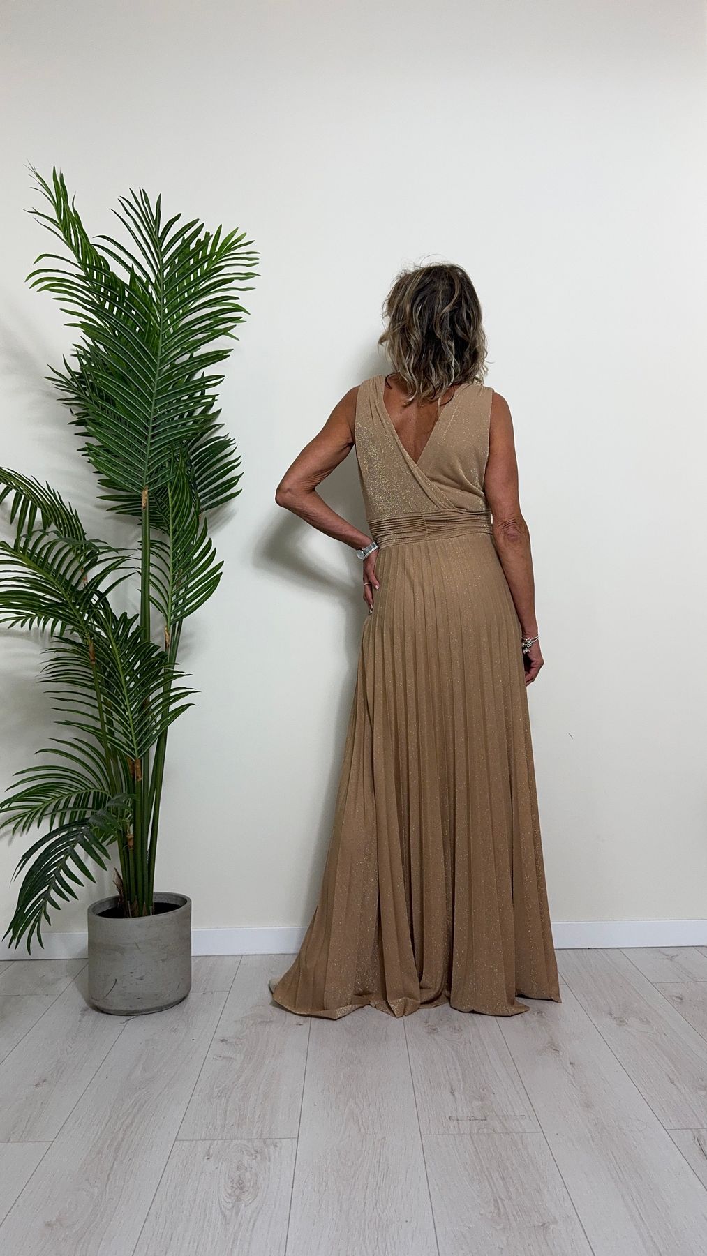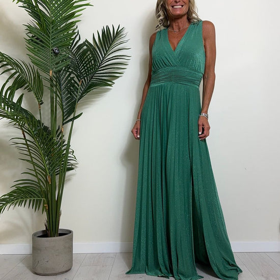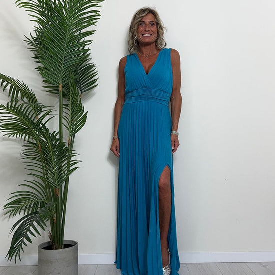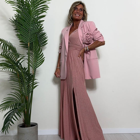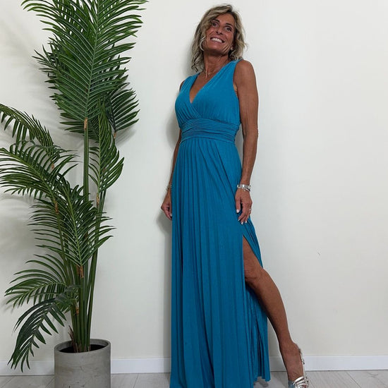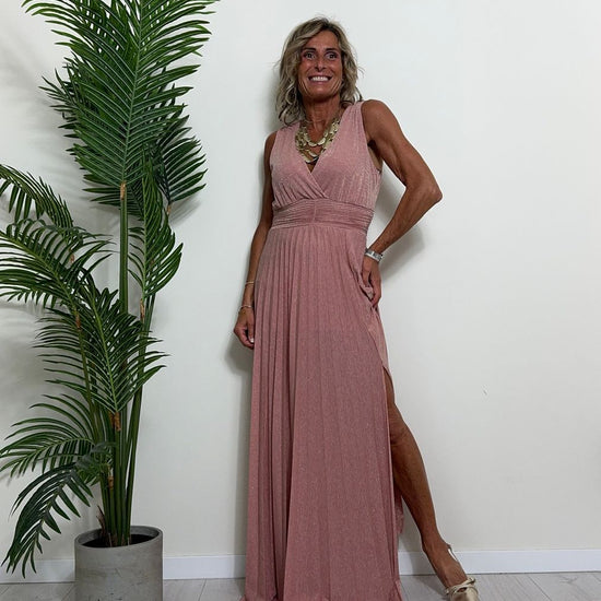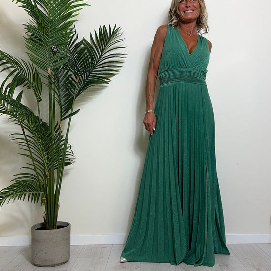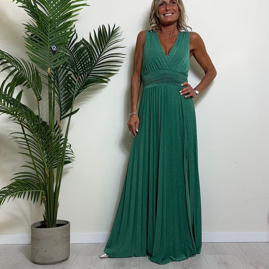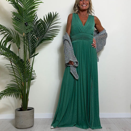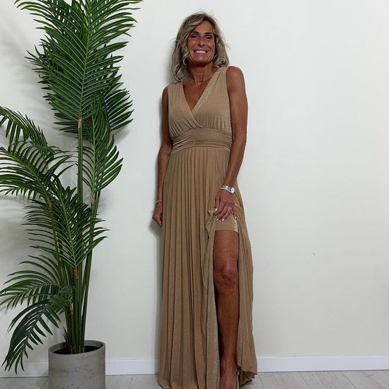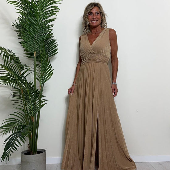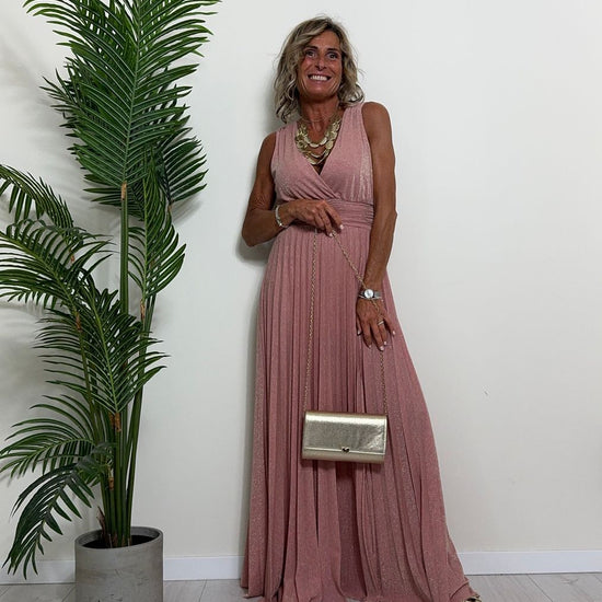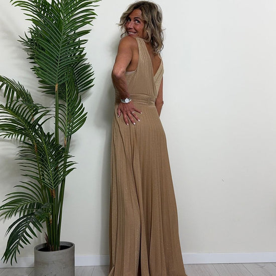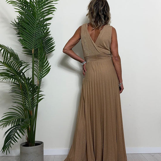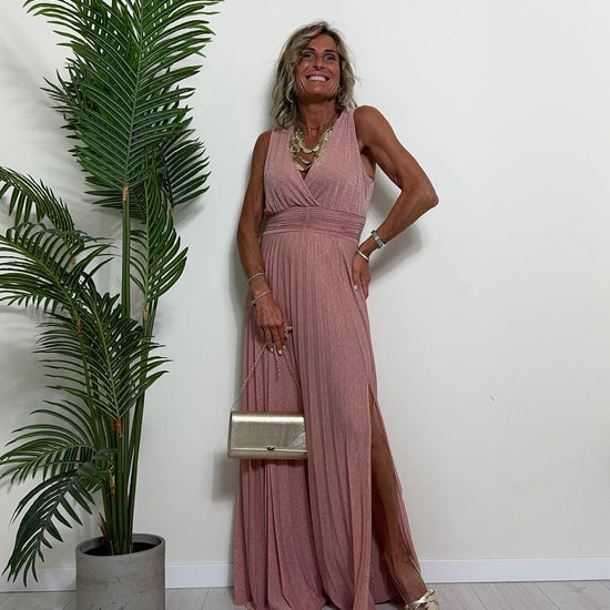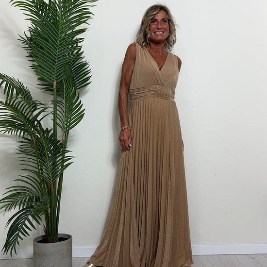 VICOLO - TB2059 - ABITO LUNGO STILE IMPERO PLISSEE LAME'