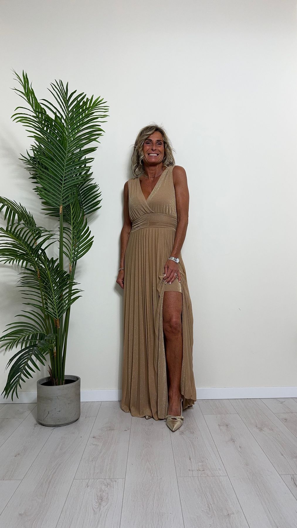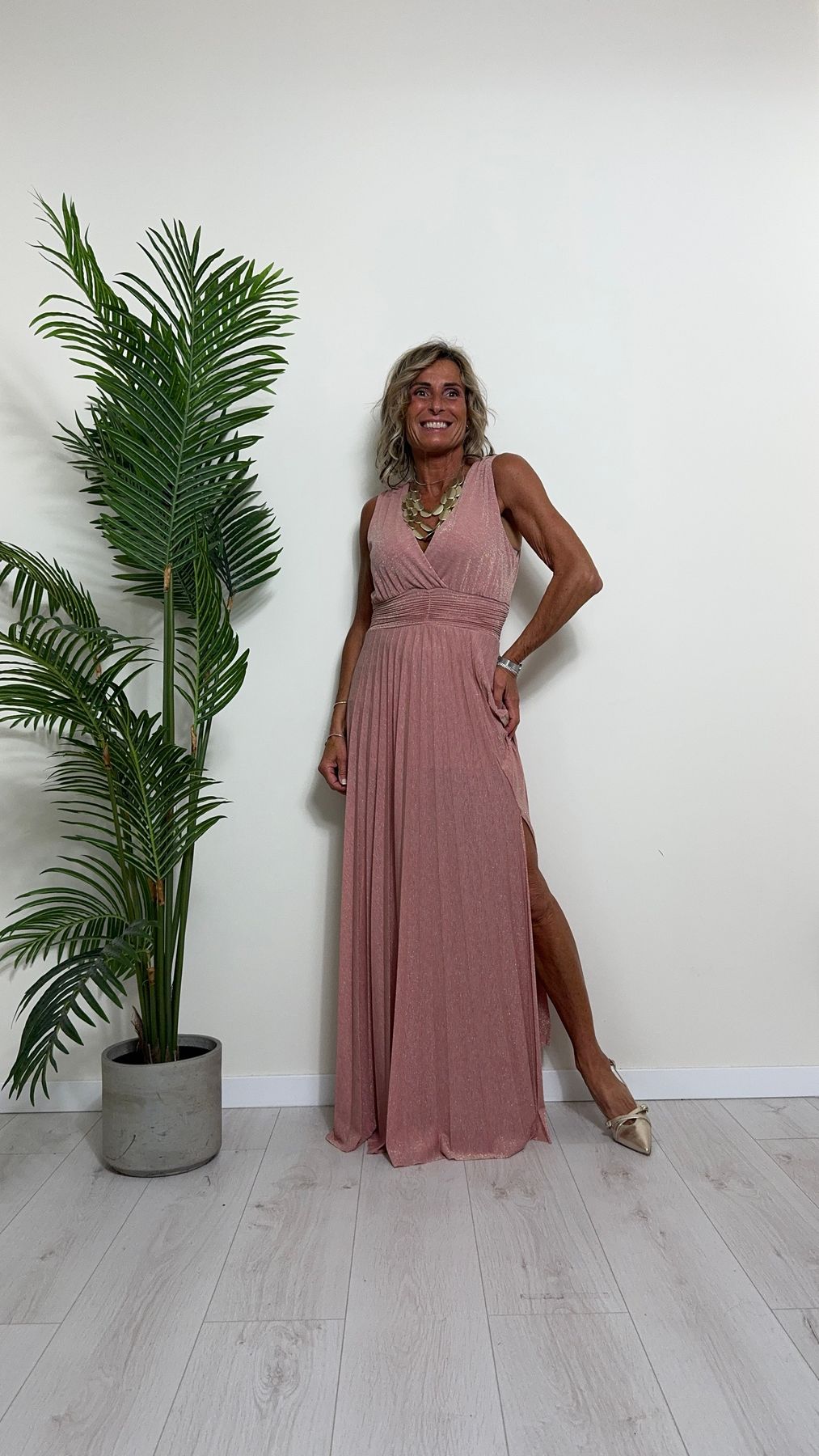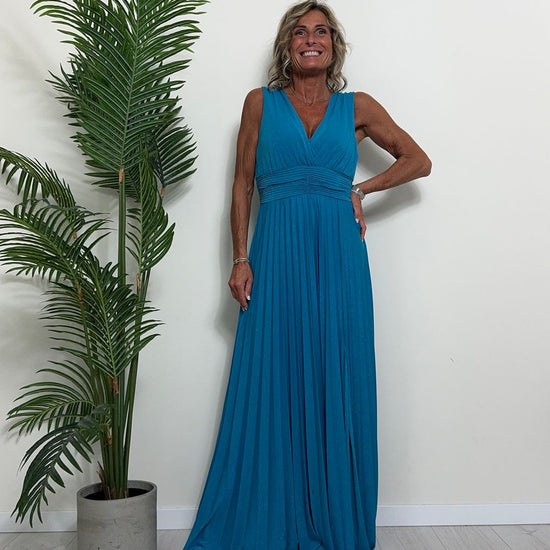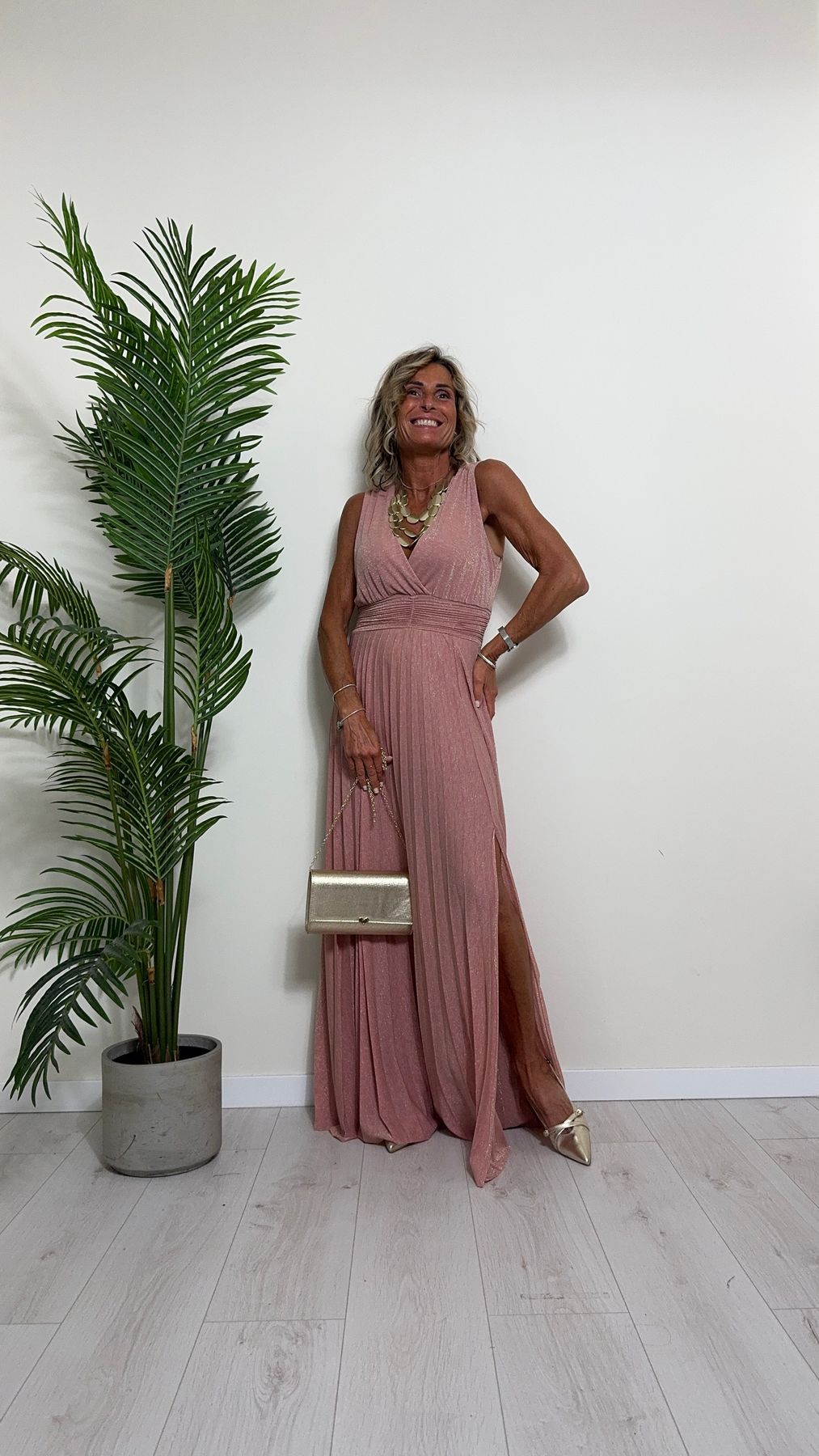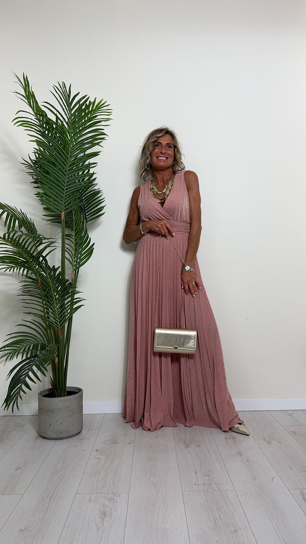 VICOLO - TB2059 - ABITO LUNGO STILE IMPERO PLISSEE LAME'