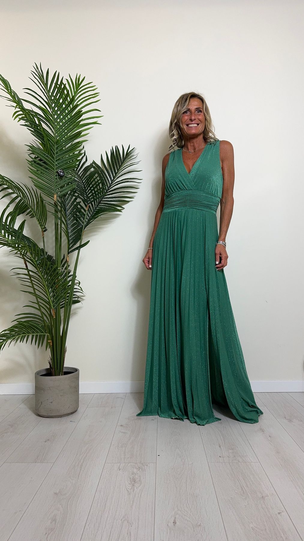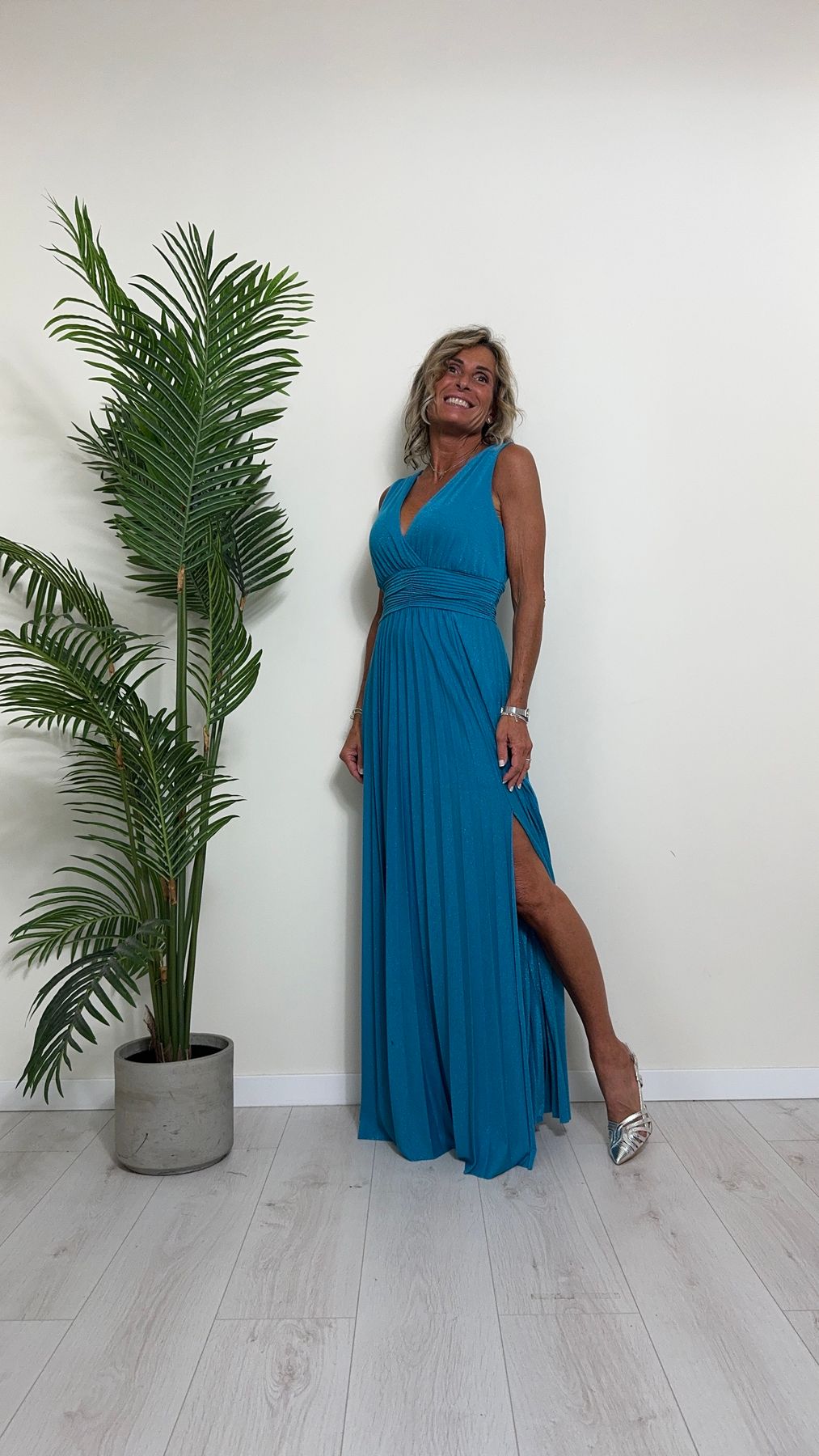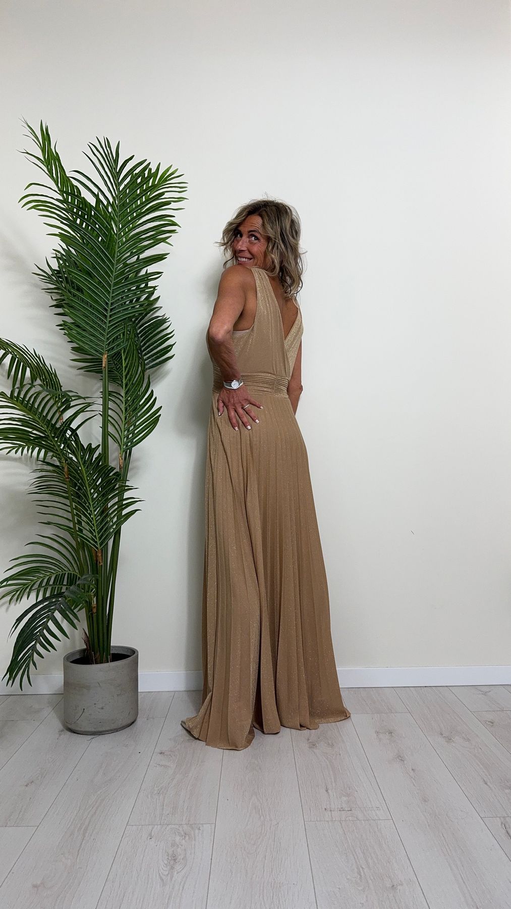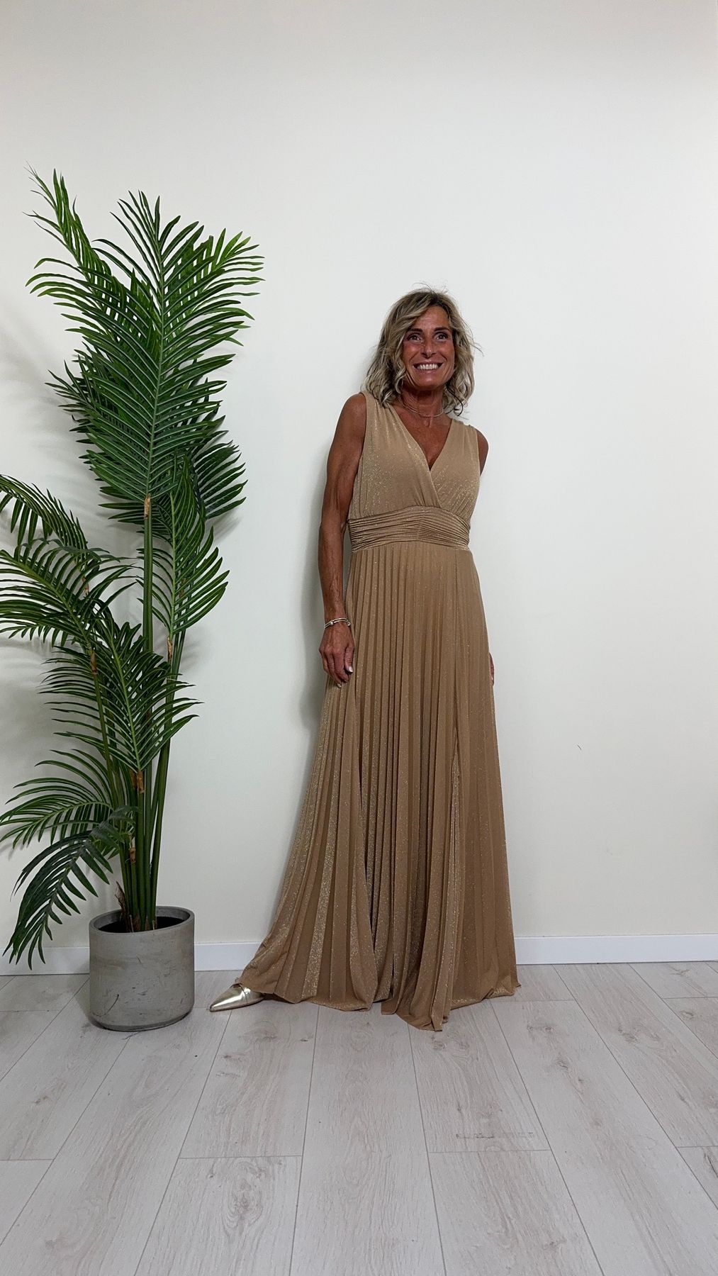 VICOLO - TB2059 - ABITO LUNGO STILE IMPERO PLISSEE LAME'