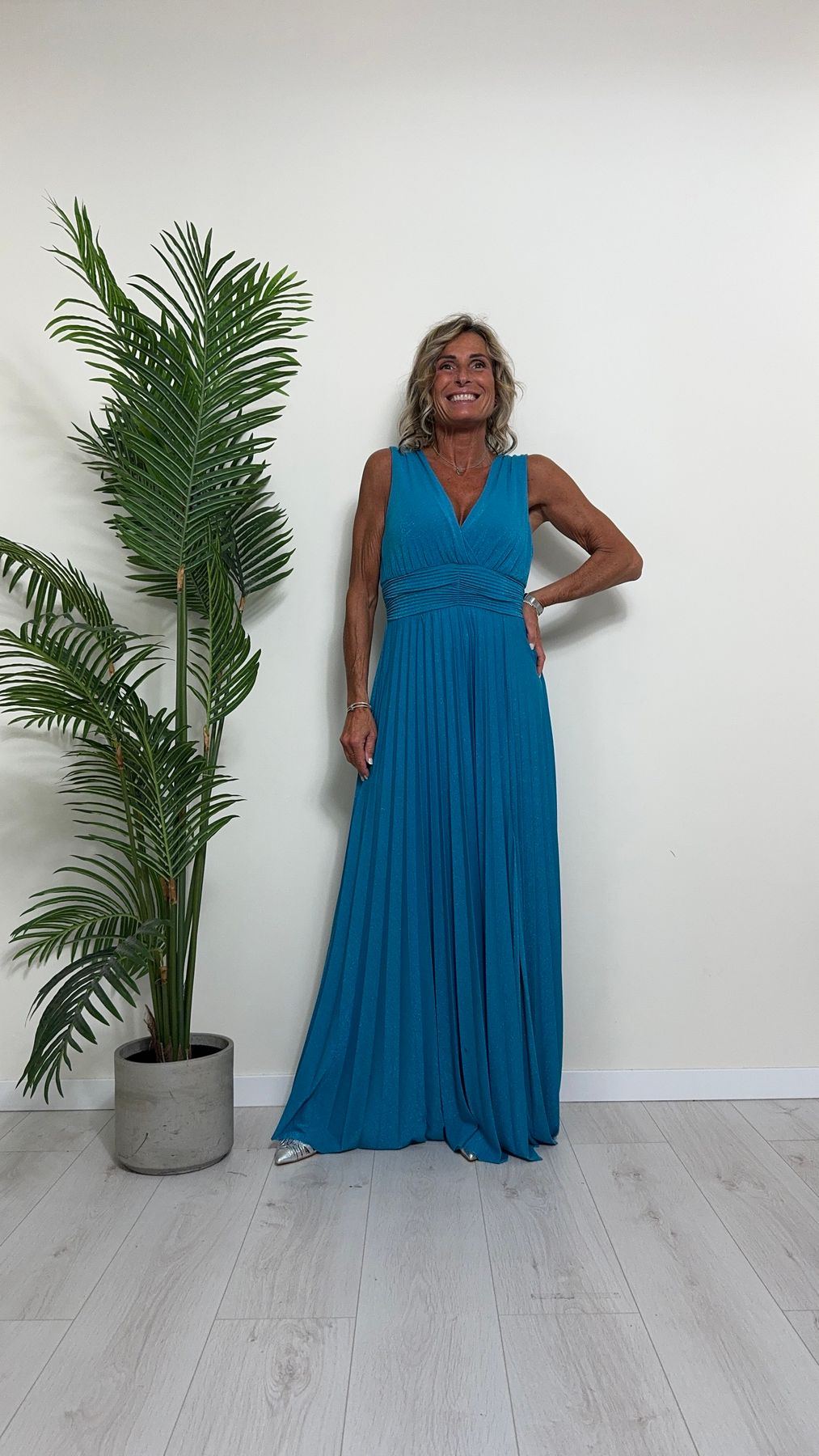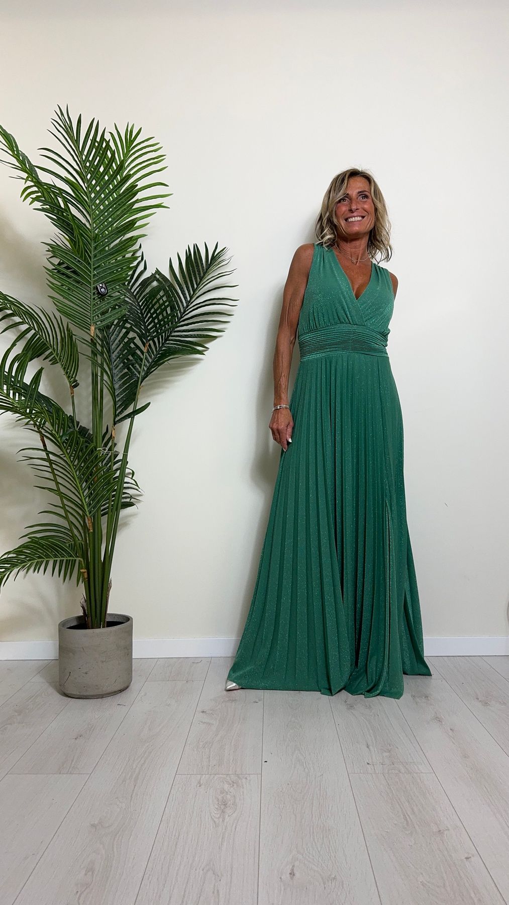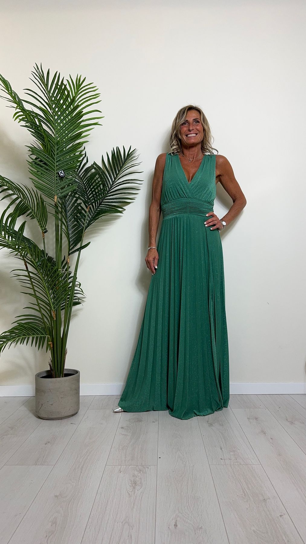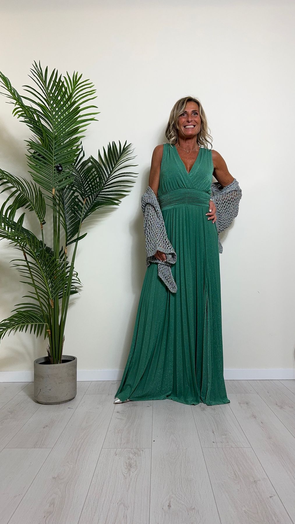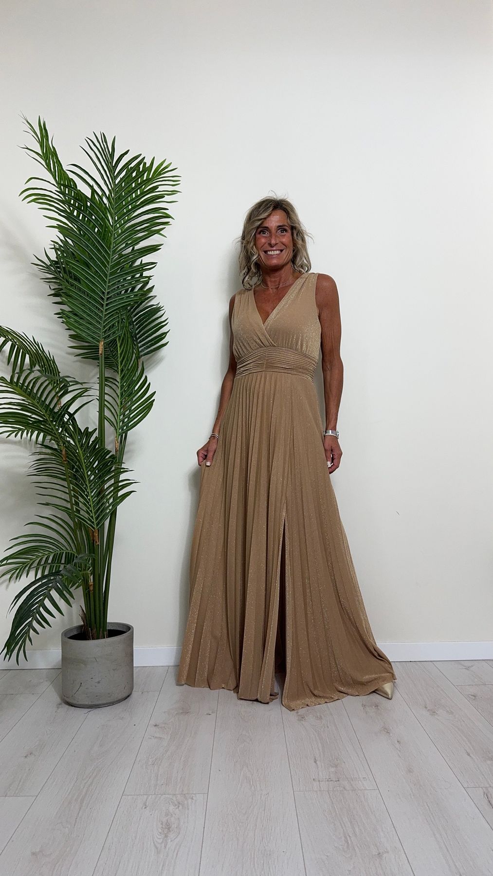 VICOLO - TB2059 - ABITO LUNGO STILE IMPERO PLISSEE LAME'